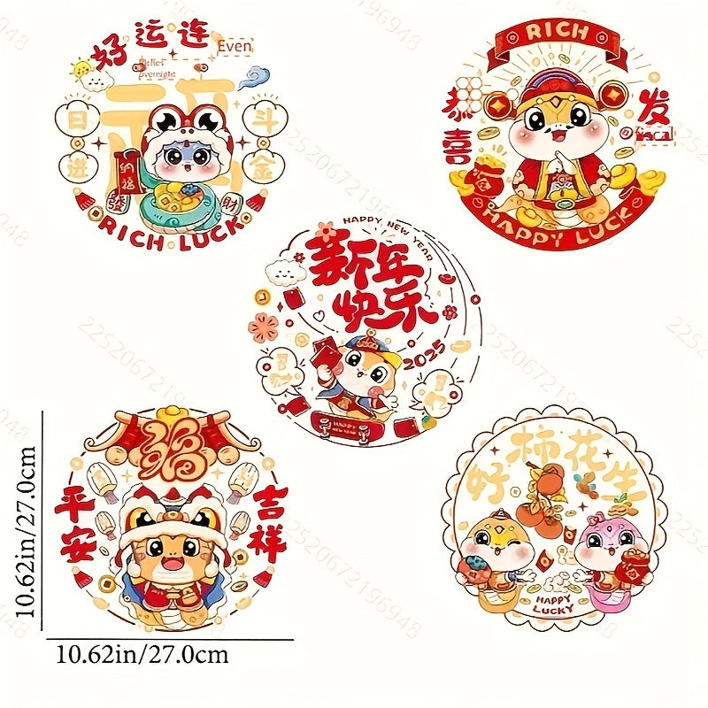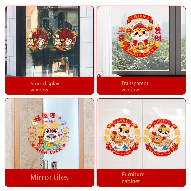 10-to'plam Xitoy Yangi Yil deraza yopishtiradigan bayramli statik stikerlar plastmassa bezaklar