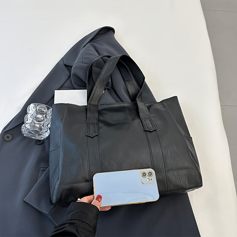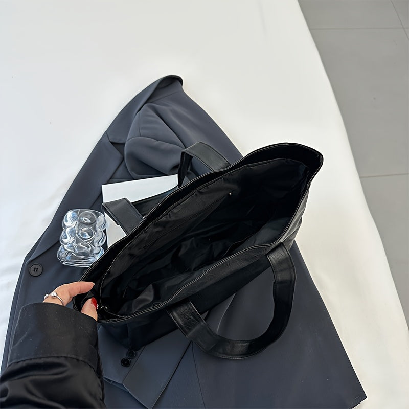 Ayollar uchun zamonaviy qora to'plam sumkasi, egiluvchan dizayn, zip yopilishi, bir nechta bo'limlar va polyester astar bilan.