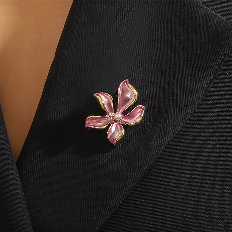 Ayollar kiyimlari uchun sun'iy marjon bilan pushti gilos gullari broshuri