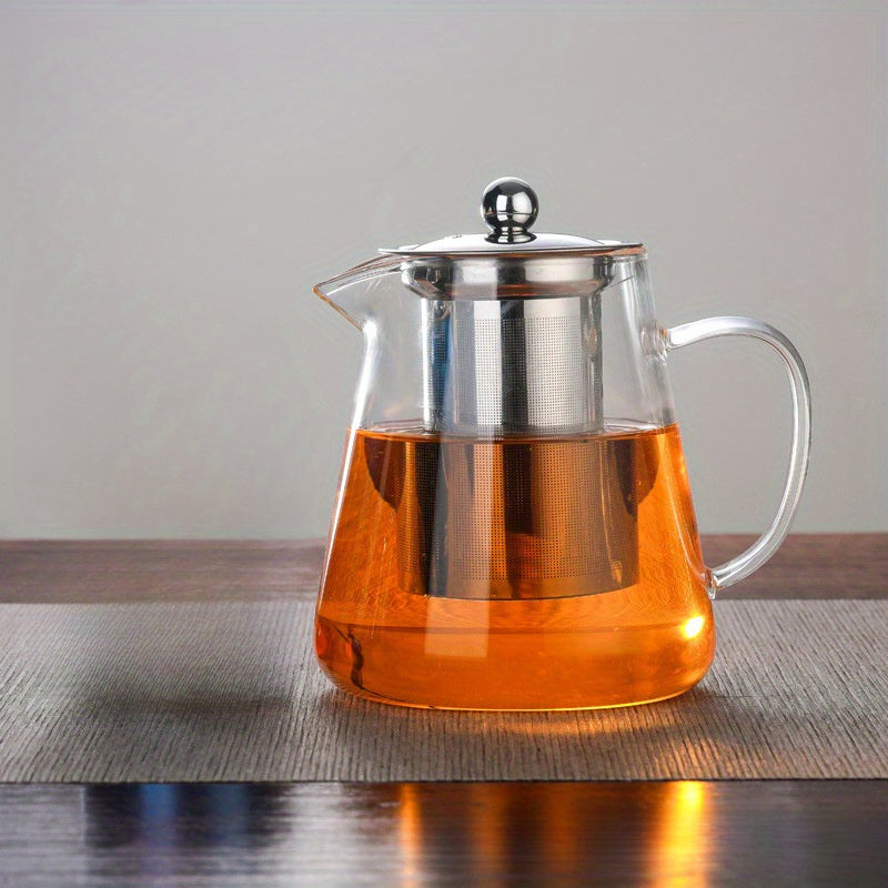 Zarif shisha choynak, zanglamas po'latdan infuzor bilan – mustahkam, idish-tovoq tozalash mashinasida yuvish mumkin, uyda gaz pechlarida choy tayyorlash uchun ideal.