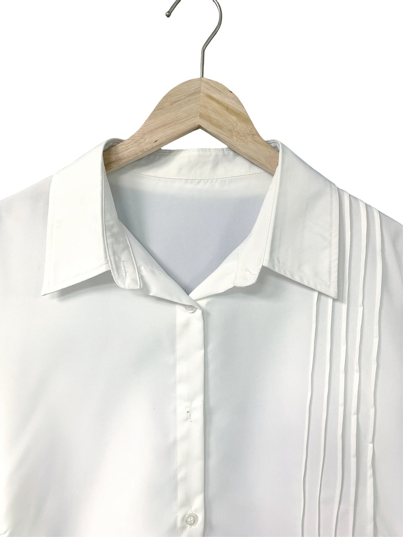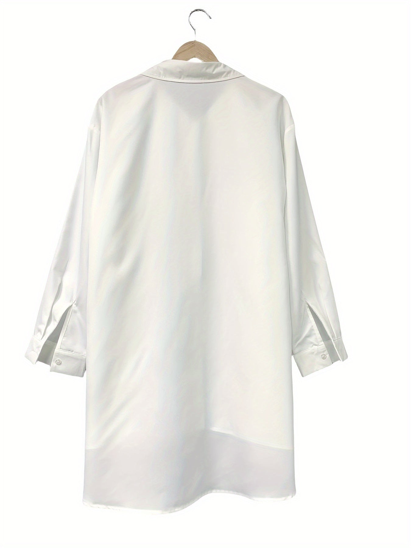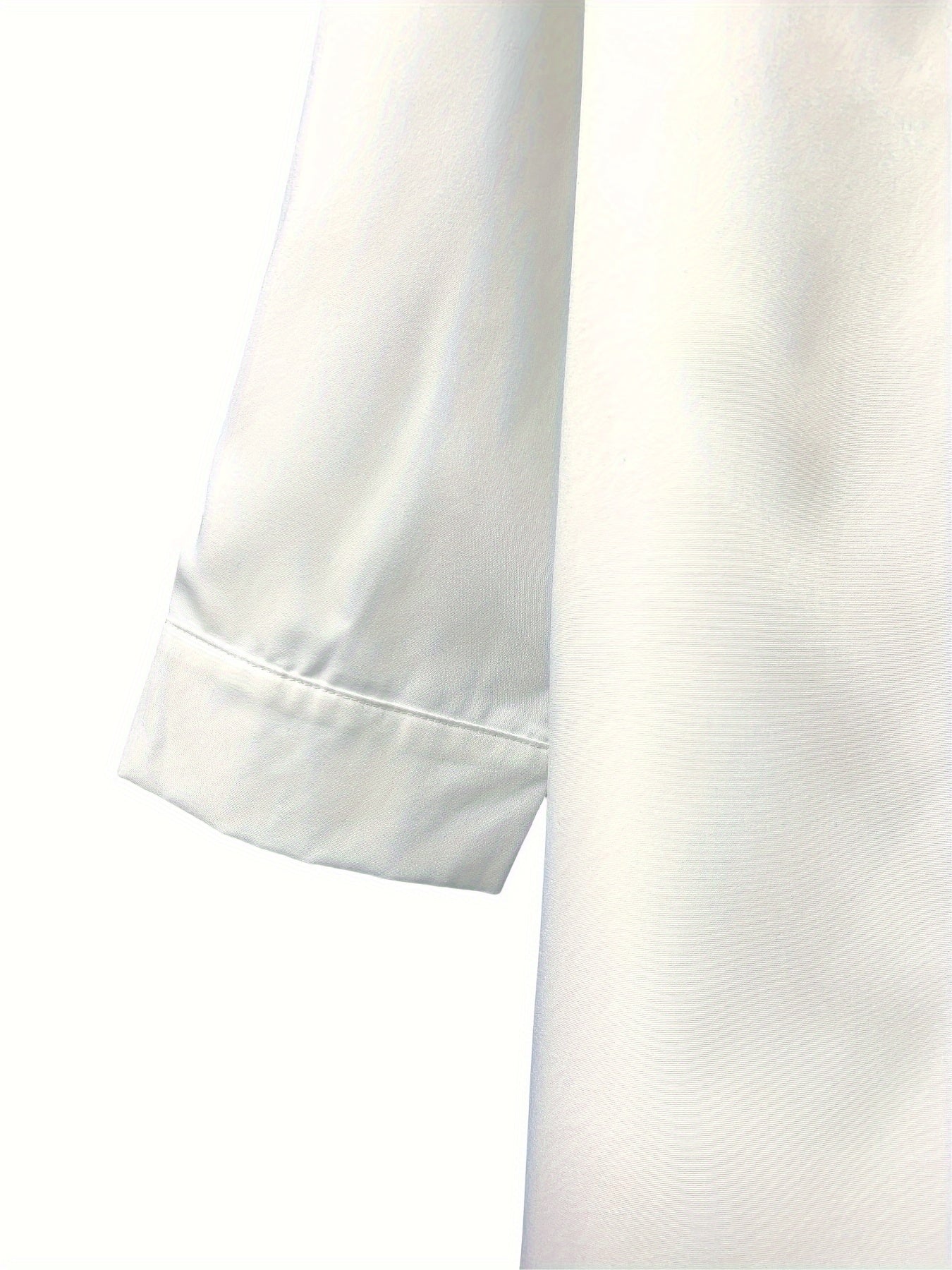 Chic plussayz uzun yengli ko'ylak, chiziqli yaka bilan, yarim shaffof polyester va spandeks aralashmasidan tayyorlangan, mashinada yuvish mumkin.