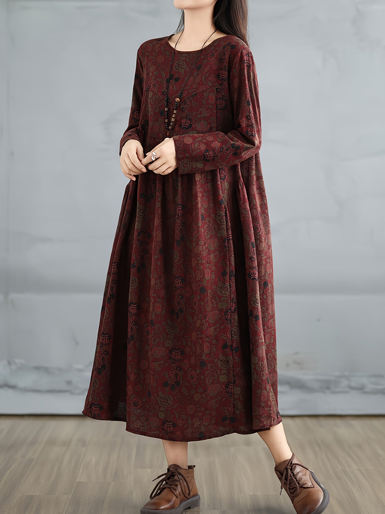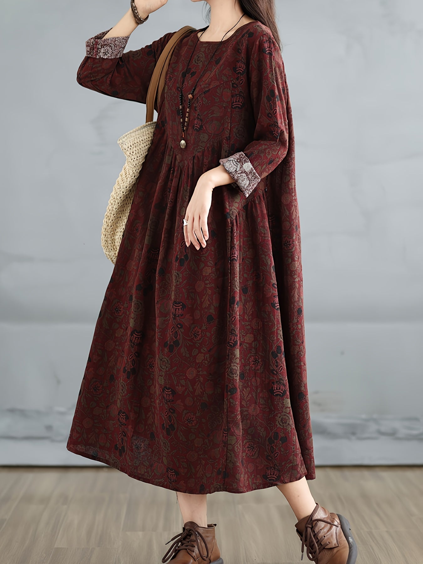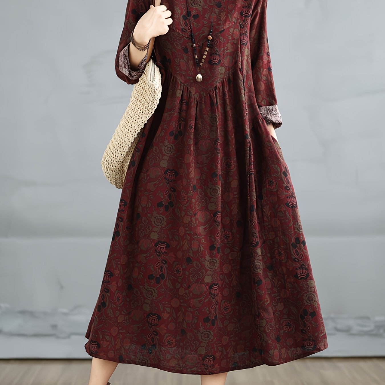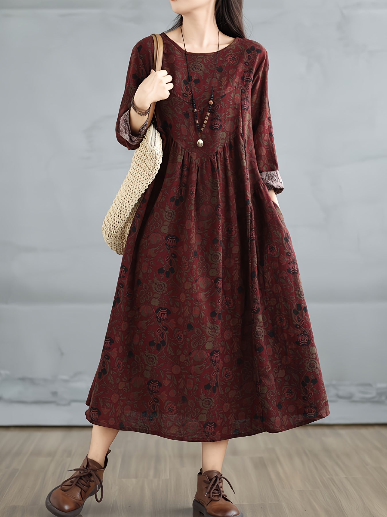Chic vintage gullar bilan bezatilgan uzun yengli, dumaloq bo'yinli, A-siluetli, cho'ntakli, cho'zilmaydigan mato, ko'cha uslubi, keng kesim, ingichka ko'rinish. Faqat qo'l bilan yoki quruq tozalash.