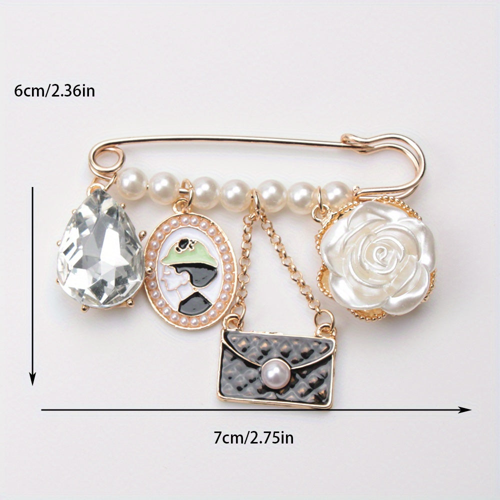 Chic vintage uslubidagi qora tassel brosh pin, rhinestone va emal qoplamasi bilan bezatilgan - Zamonaviy multfilm dizayni, ayollar kiyimlari va sumkalar uchun nafis bezak.