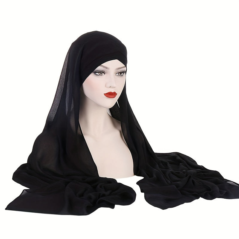 Ayollar uchun Chiffon Instant Hijab bir hil rangda, ostki qopqog' bilan va nafas oladigan elastik peshona bandi bilan quyoshdan himoyalanish uchun