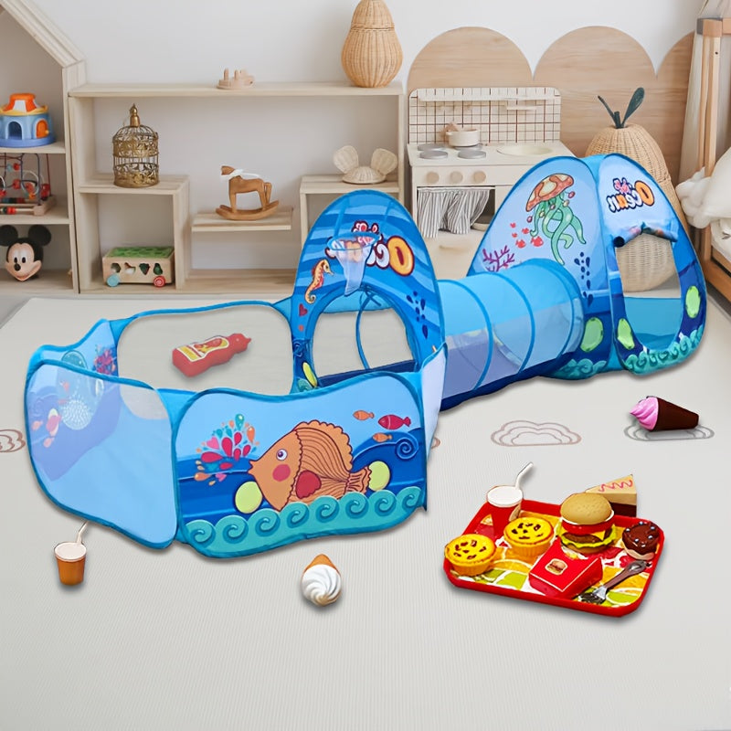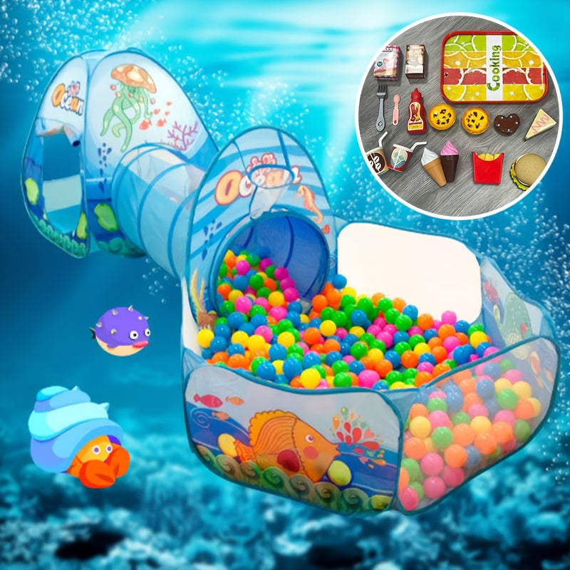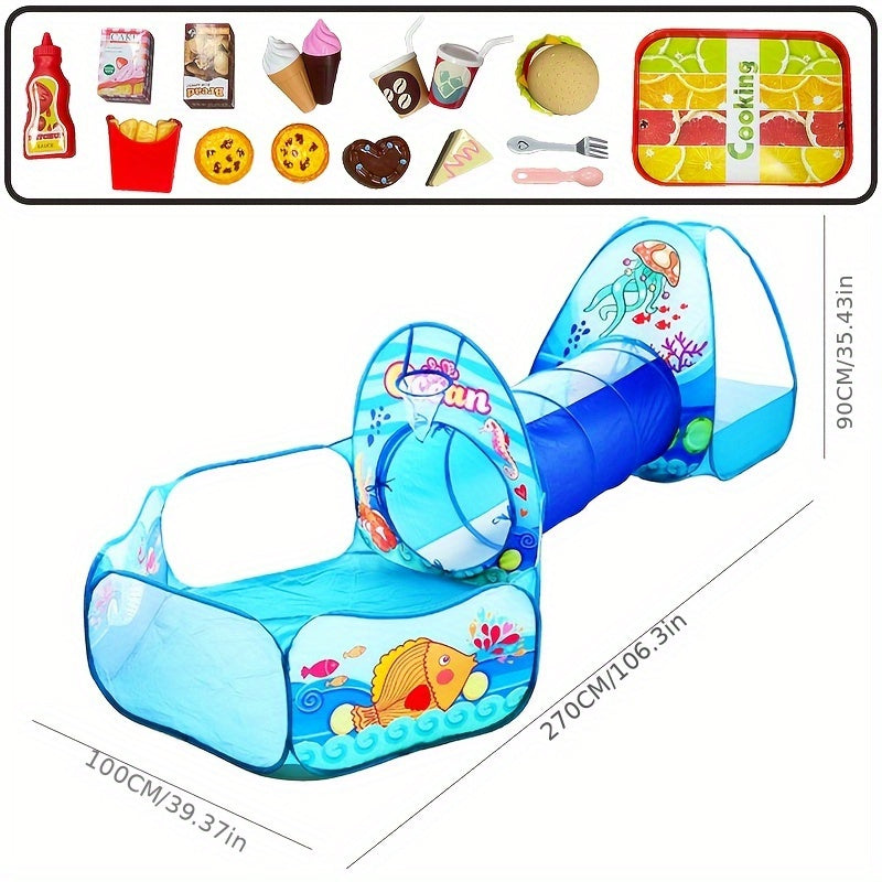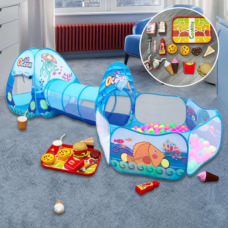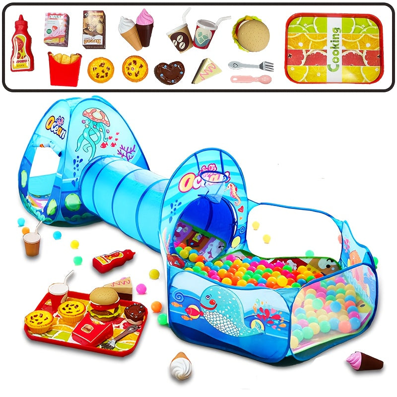Bolalar uchun 3 ta bo'lakli to'p havzasi, chodir, tunnel va o'yin uyi, 3 yoshdan katta bolalar uchun