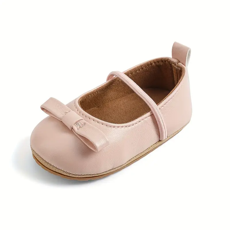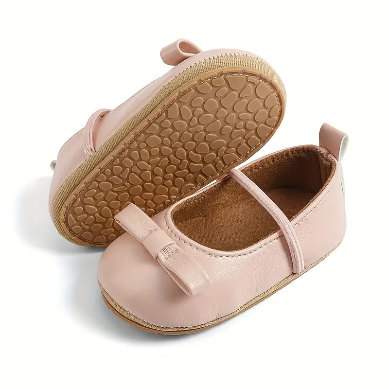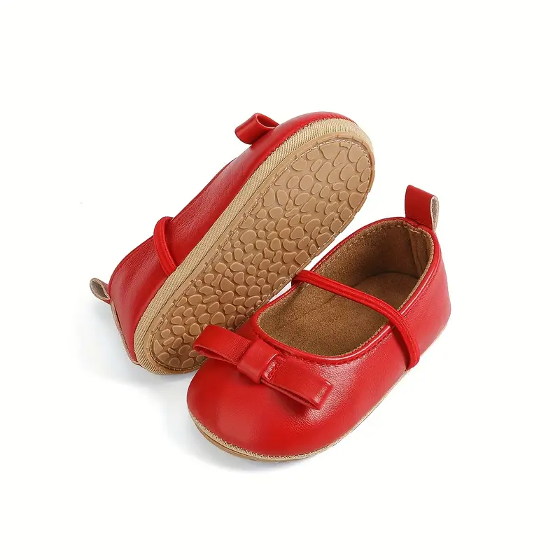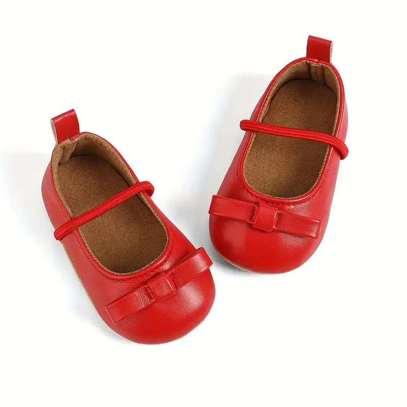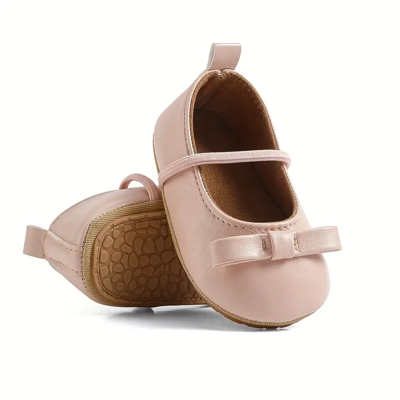 Farqli ranglardagi bolalar uchun balet poyabzallari, moslashuvchan taglik, sirpanmaydigan dizayn va jozibali kamon tafsiloti bilan. Har kuni va maxsus tadbirlar uchun mos.