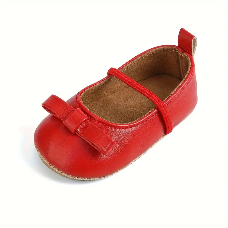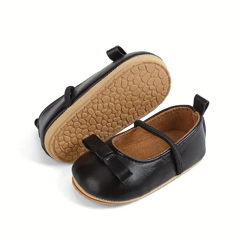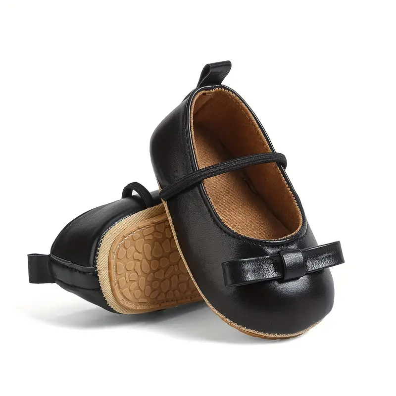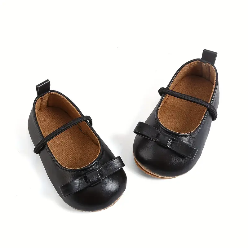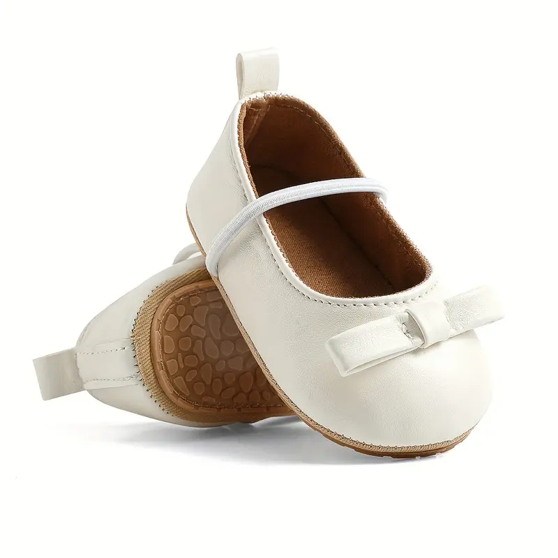 Farqli ranglardagi bolalar uchun balet poyabzallari, moslashuvchan taglik, sirpanmaydigan dizayn va jozibali kamon tafsiloti bilan. Har kuni va maxsus tadbirlar uchun mos.