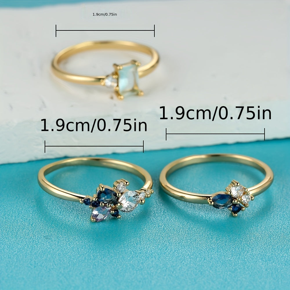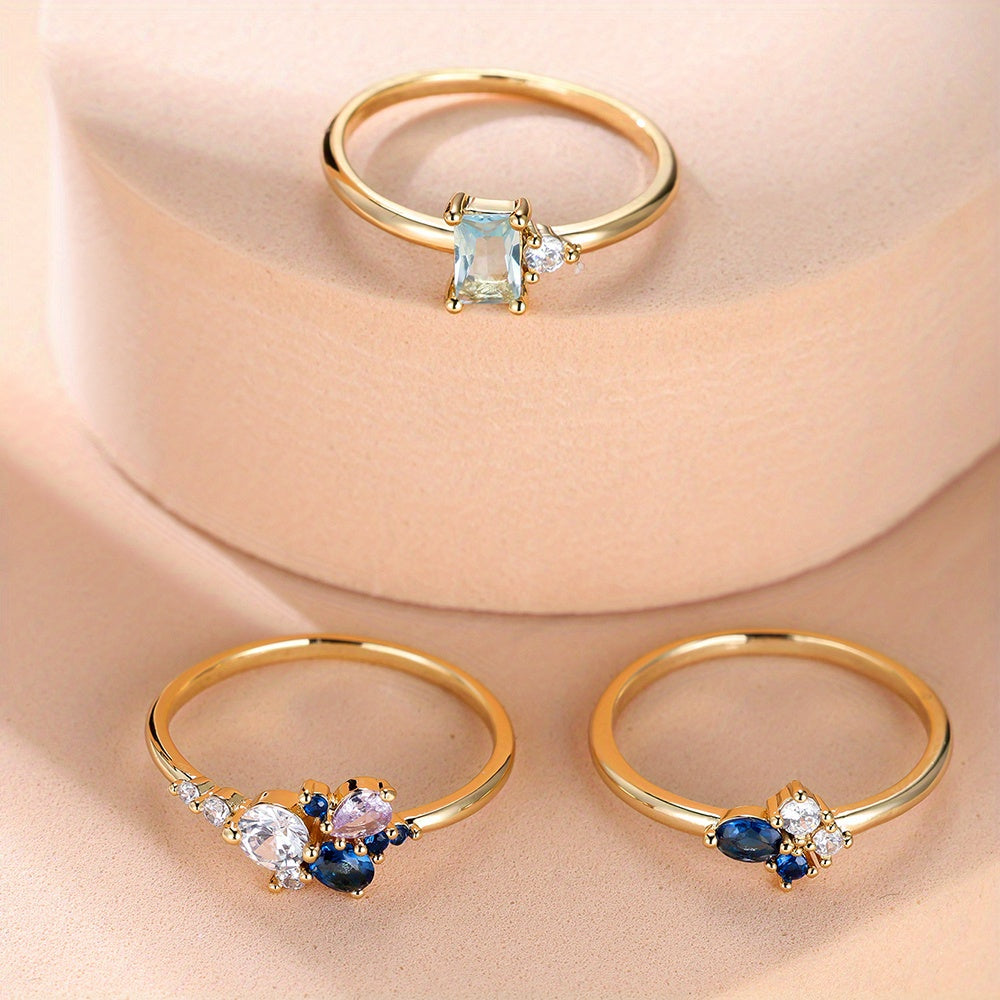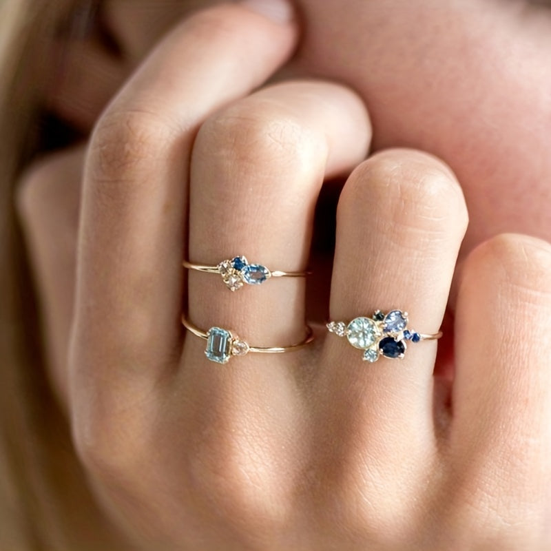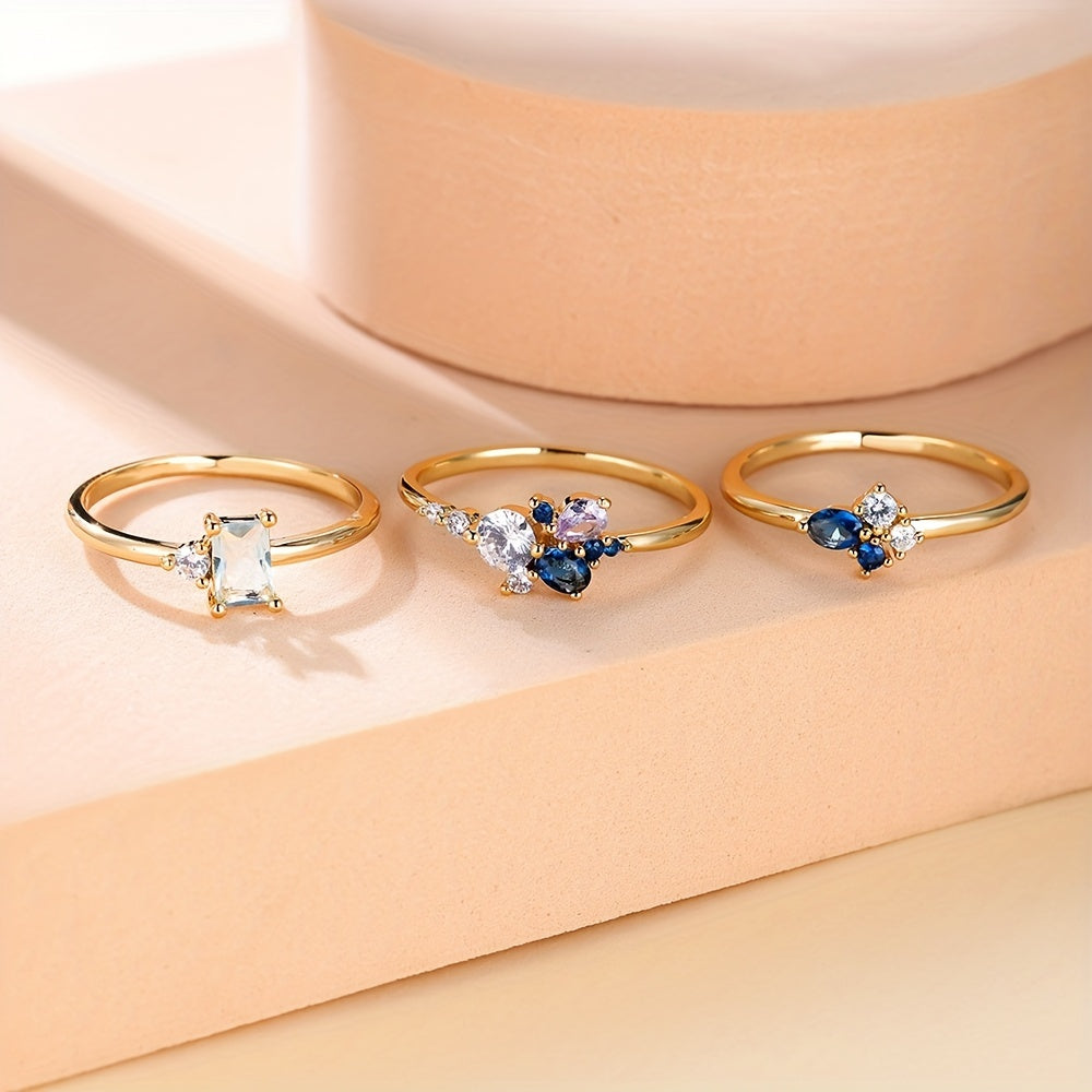 Bir nechta o'lchovlardan tanlang va ushbu zamonaviy to'plangan uzuklar bilan kundalik kiyimlaringiz yoki bayram ko'rinishlaringizga nafislik qo'shing, ularning ichiga joylashtirilgan zirkoniya toshlari mavjud.