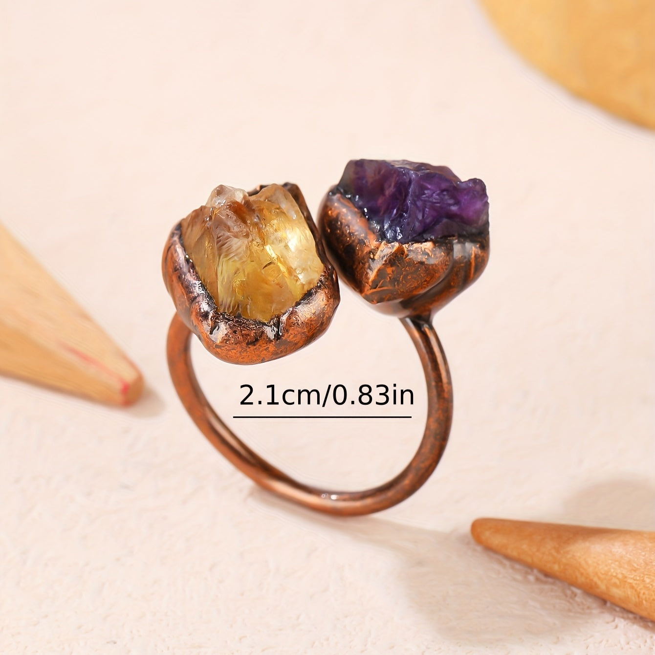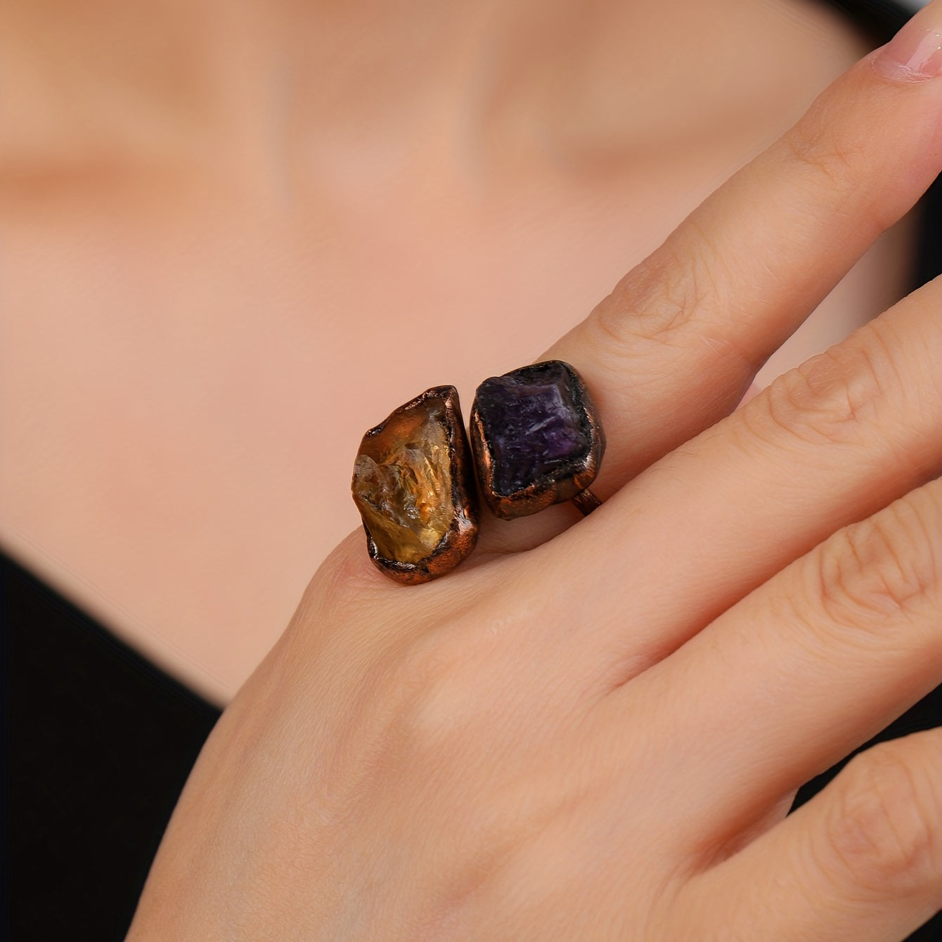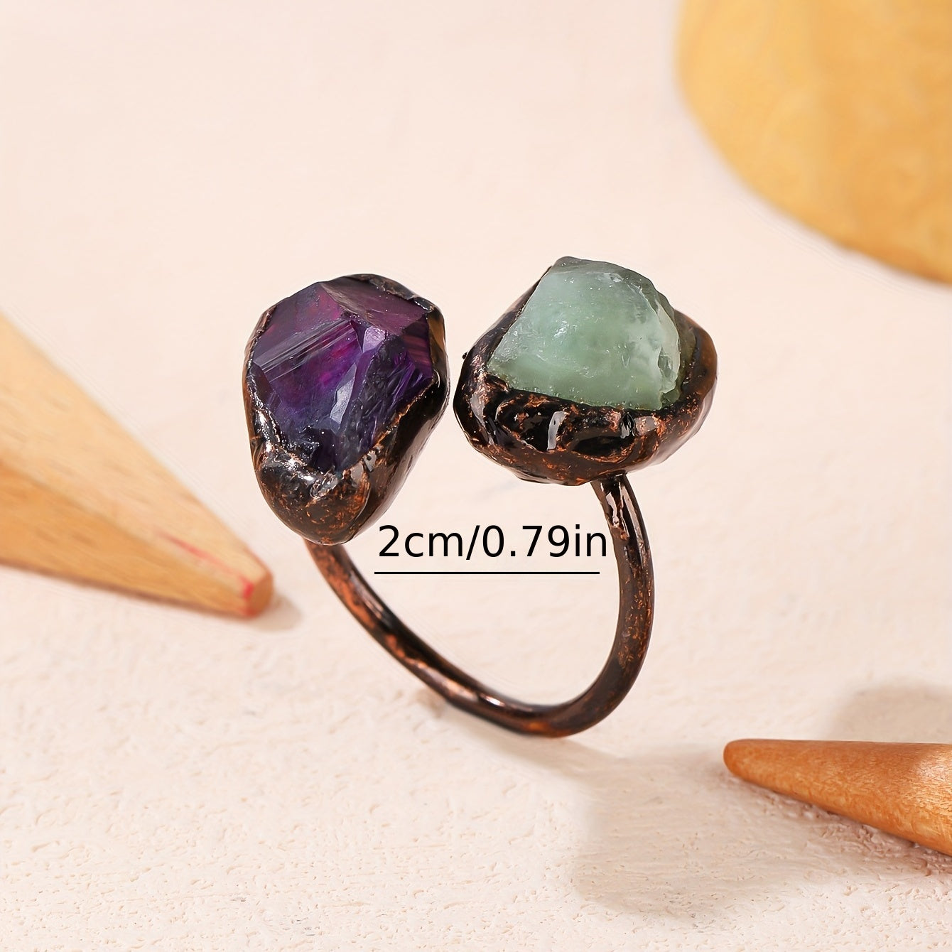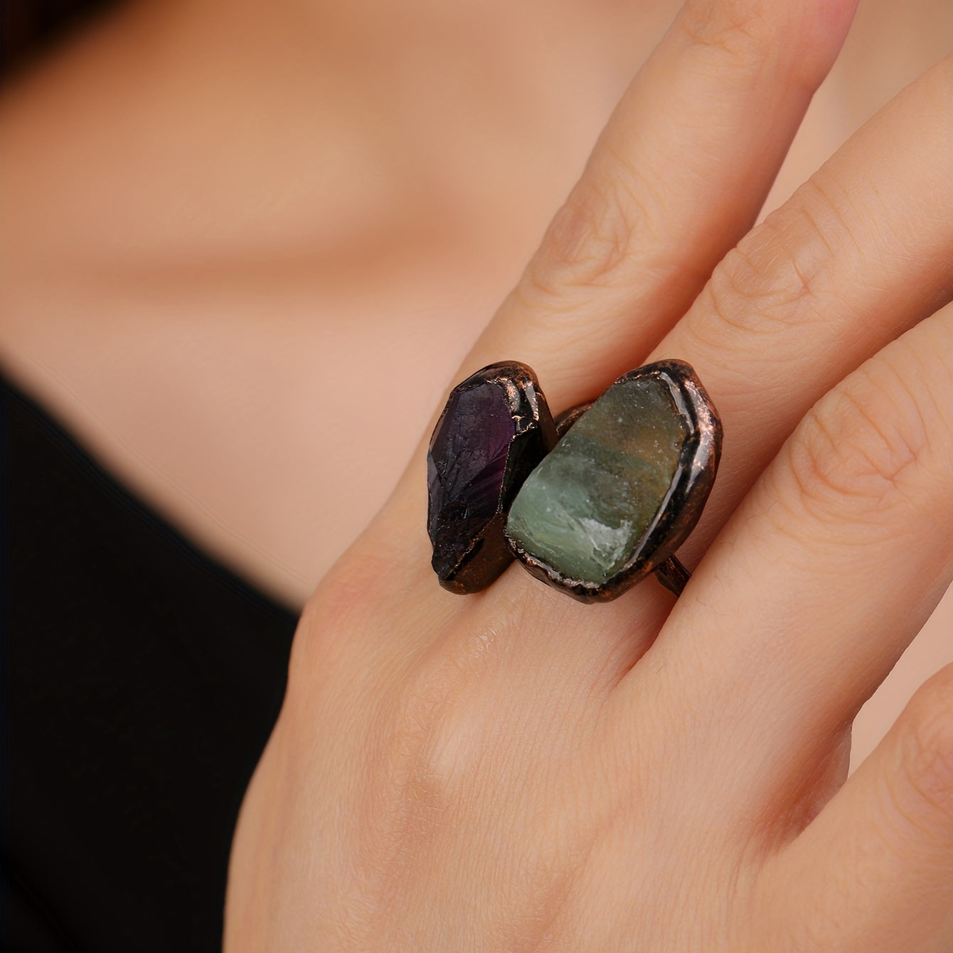 Har kuni kiyimga mos keladigan tabiiy kristalli inlay bilan bezatilgan vintage yopish ringlarining ikkita uslubidan tanlang. Oila uchun mukammal sovgʻa bo‘lib, bu uzuklar ona tabiatdan energiya olish uchun mo‘ljallangan, har biri o‘ziga xos shaklda.