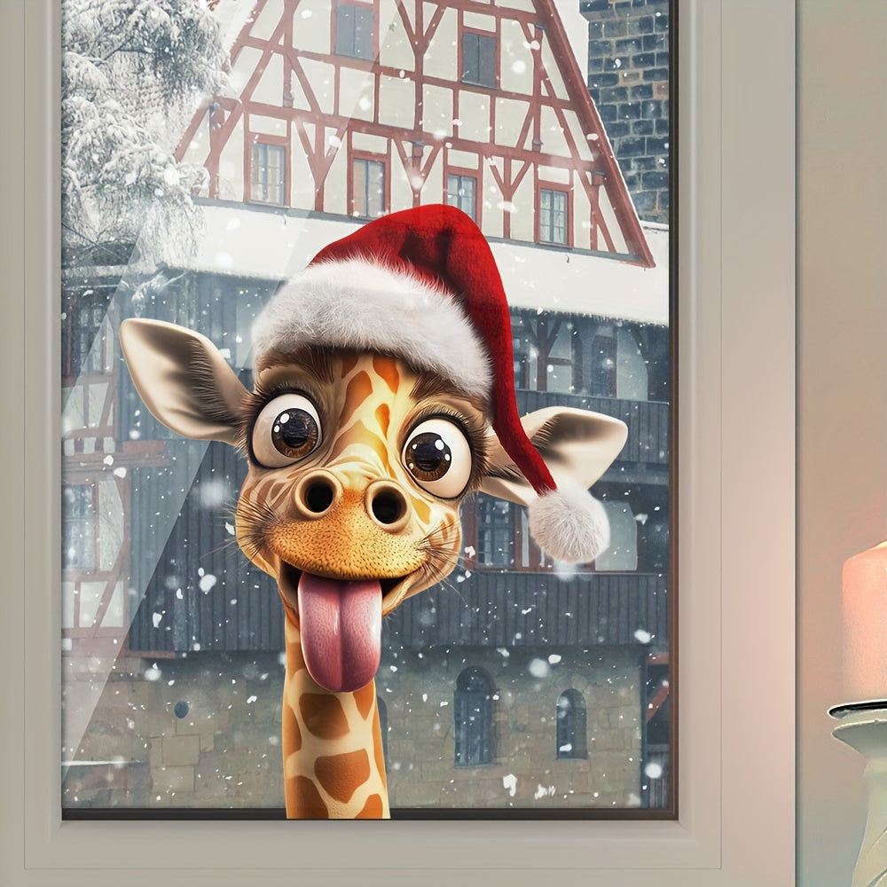 Rojdestvo Giraffe oynaga yopishqoq, mehmonxona yoki yotoqxona uchun bayramli decal