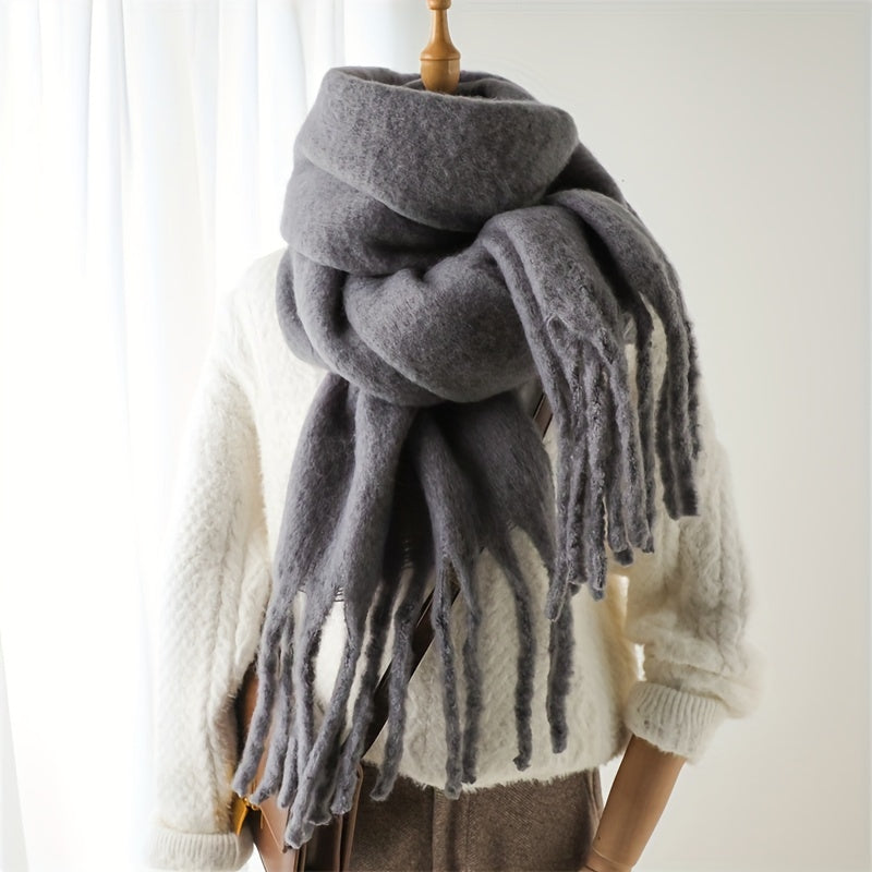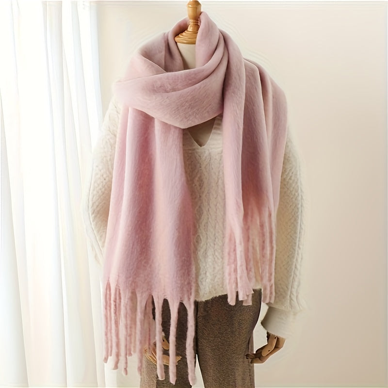 Erkaklar va ayollar uchun monoxrom imitatsiya kaşmir qalinlashtirilgan sharf, tassellar bilan sovuq ob-havo uchun