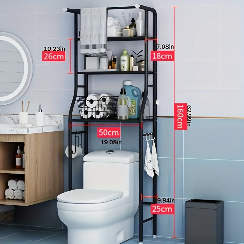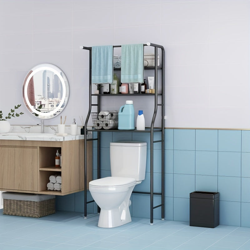 Qora metall burchakli polka, osma rodli, 3 qavatli hammom uchun saqlash racki