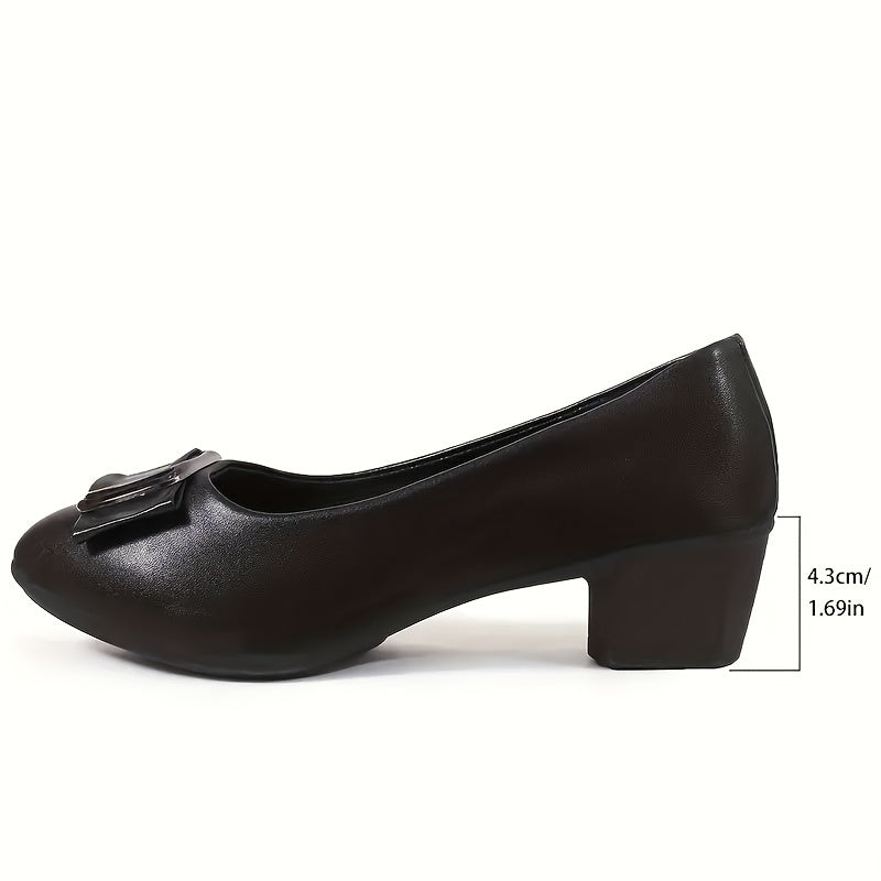 Ayollar uchun klassik dumaloq barmoqli pumpalar, bir rangda va o'rtacha to'piq bilan, sirpanmaydigan yumshoq taglik va sun'iy yuqori qism bilan. Barcha mavsumlarda qulaylik uchun mato ichki tagligi va plastik tashqi tagligi, qismidir