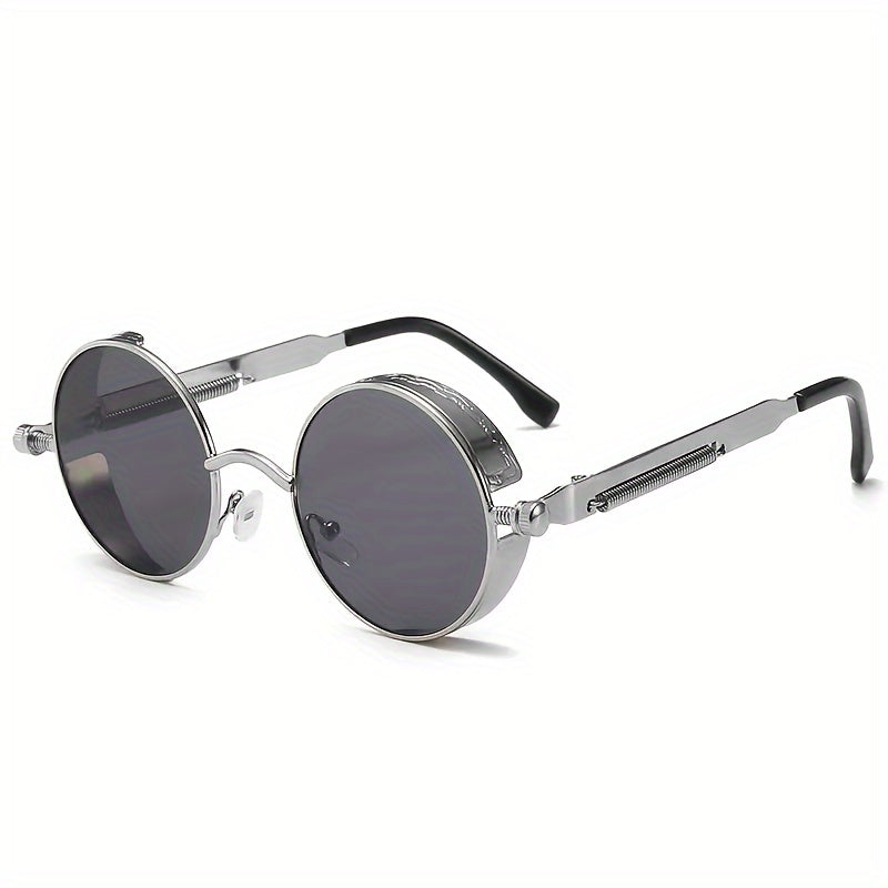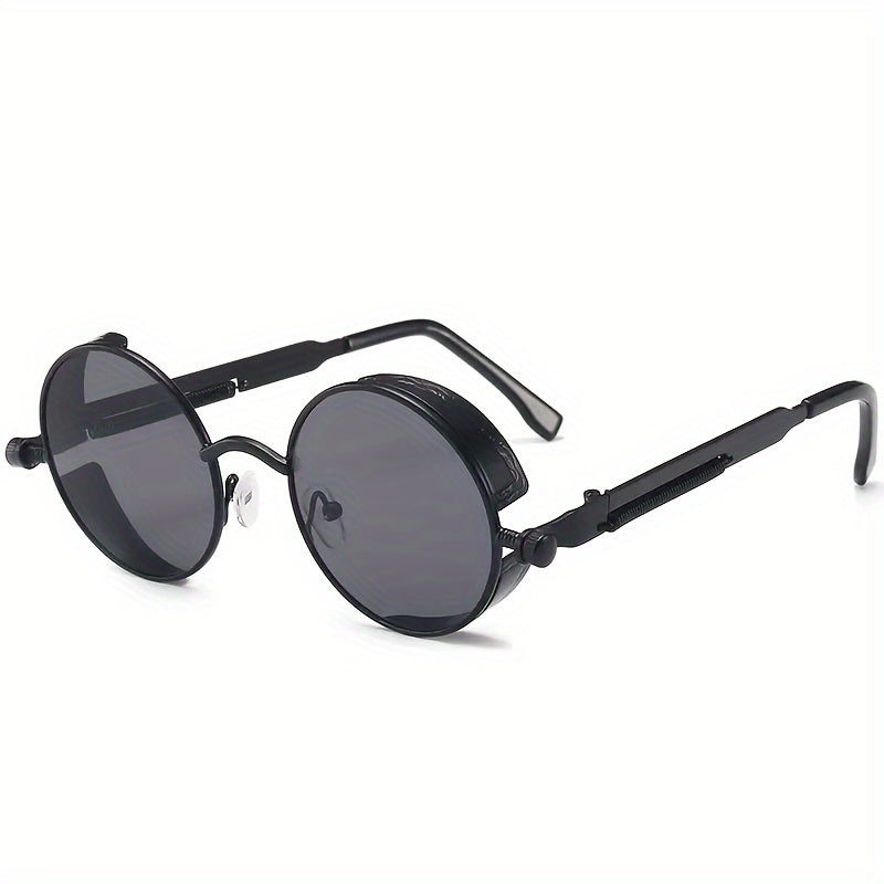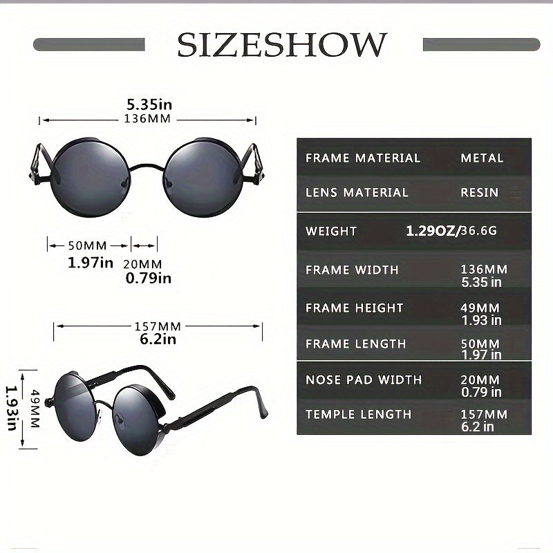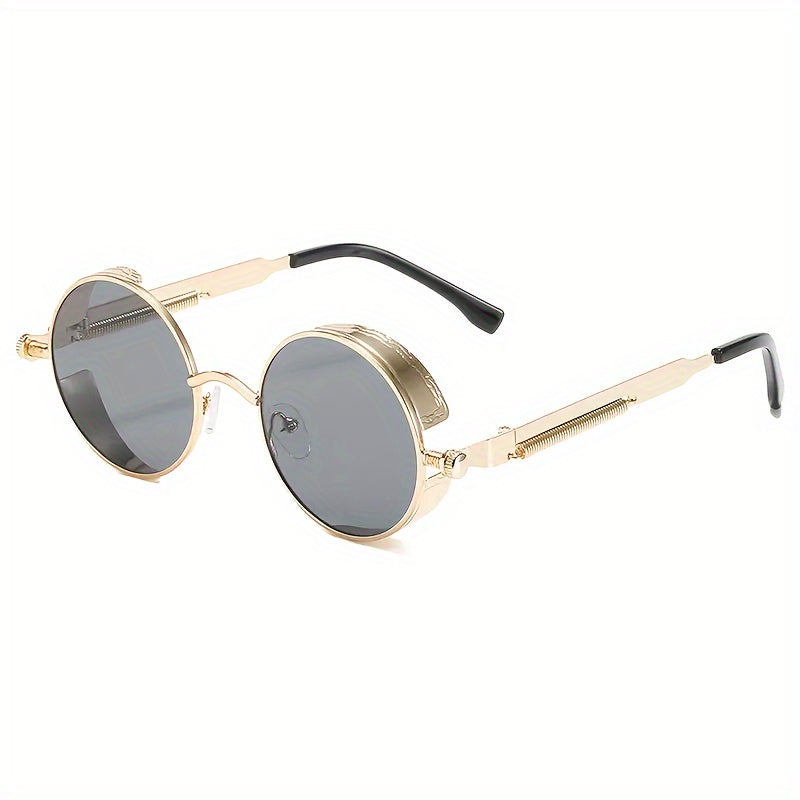 Erkaklar uchun oltin rangli doira shaklidagi steampunk quyosh ko‘zoynaklari, yozg‘ichli shankalar bilan