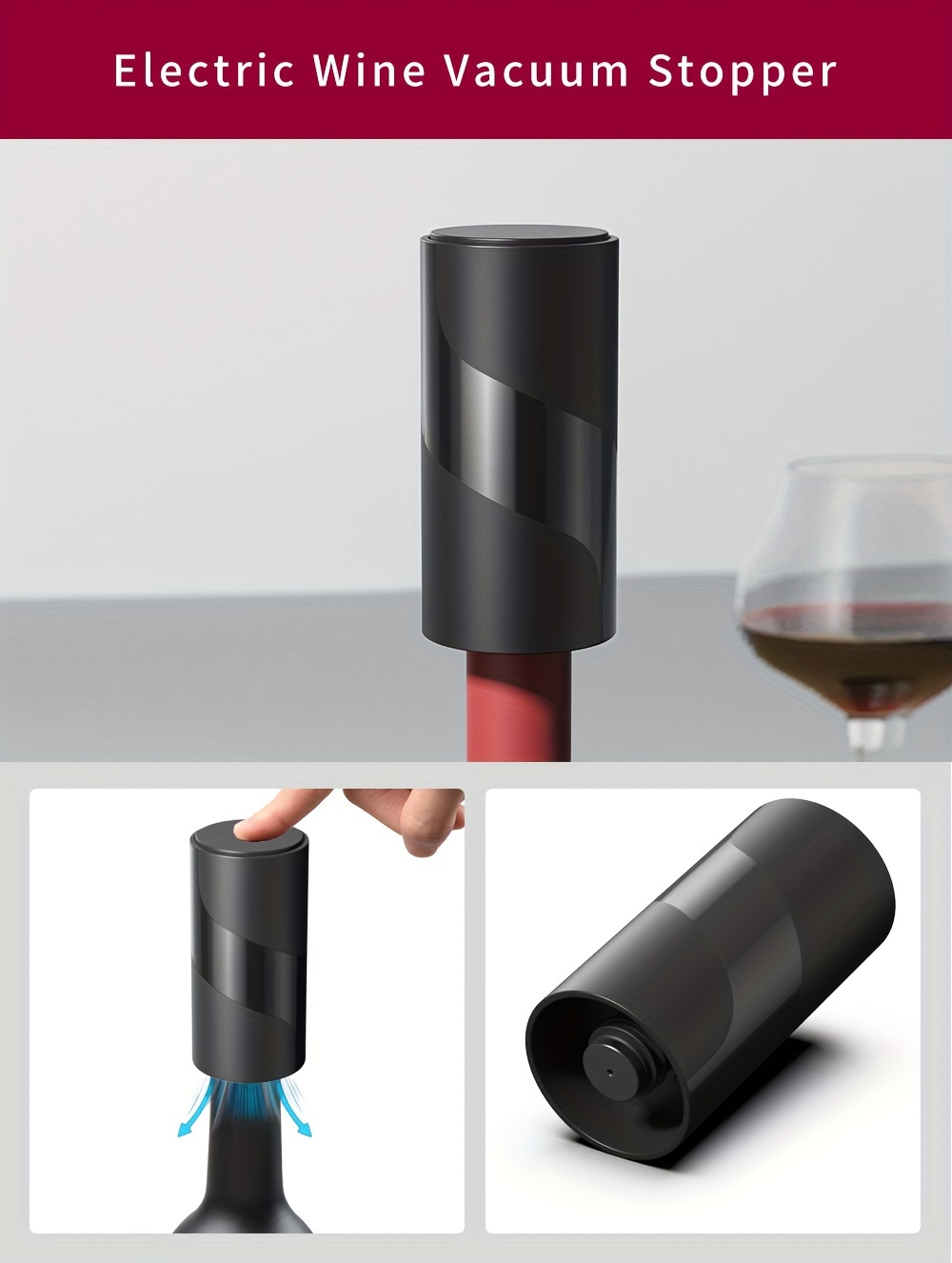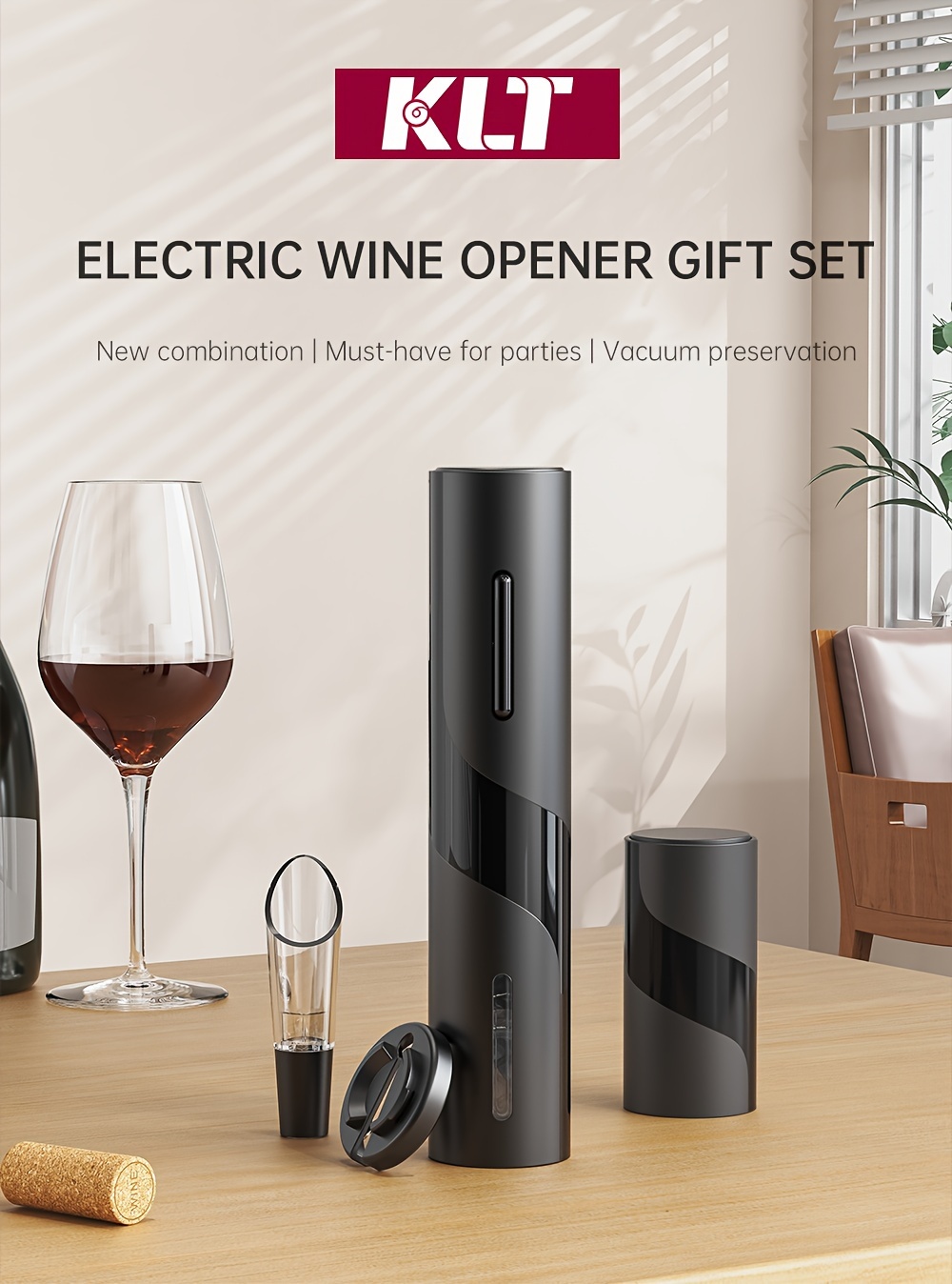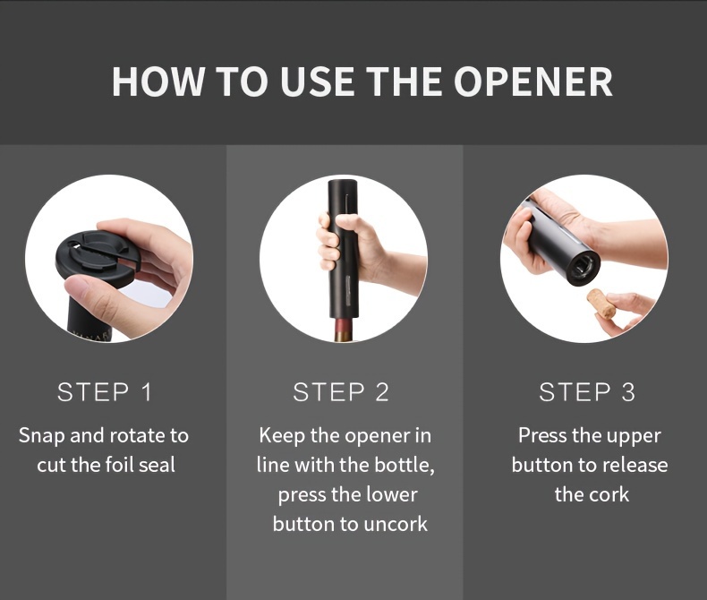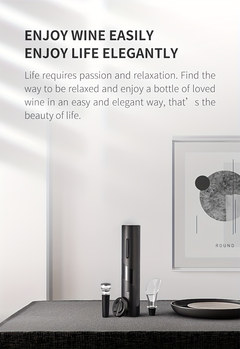 Elektr quvvatli vino shishasi ochgich to'plami, folga kesgich va vakuum yopgich bilan