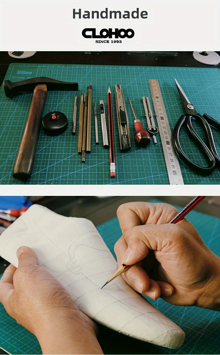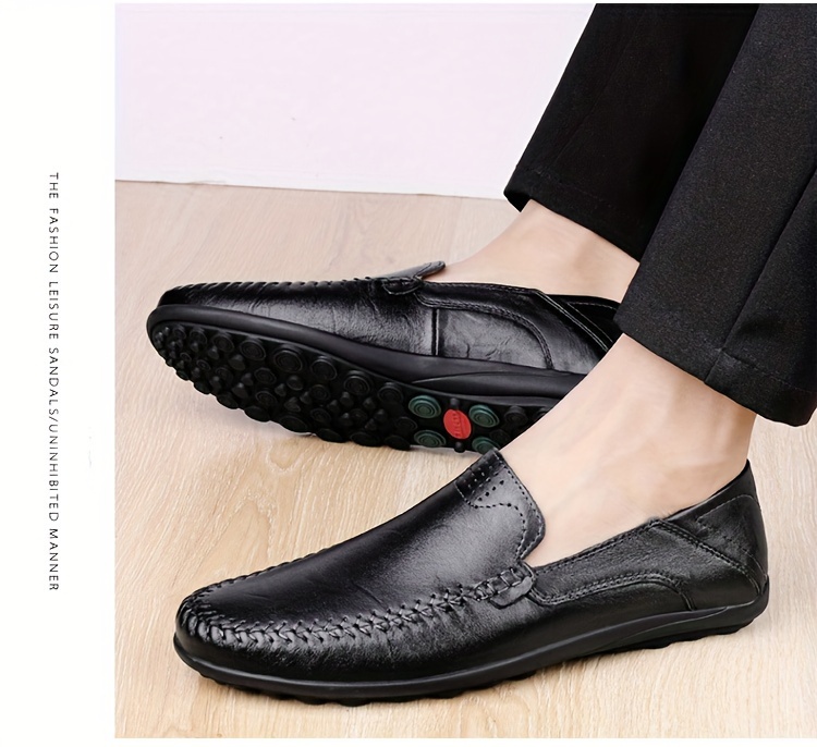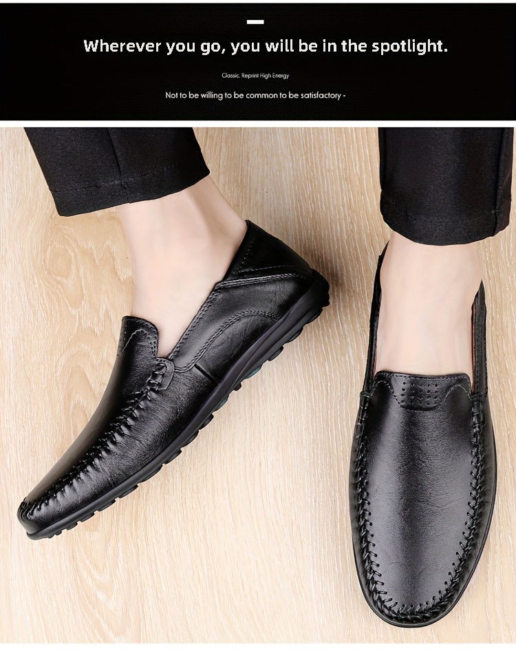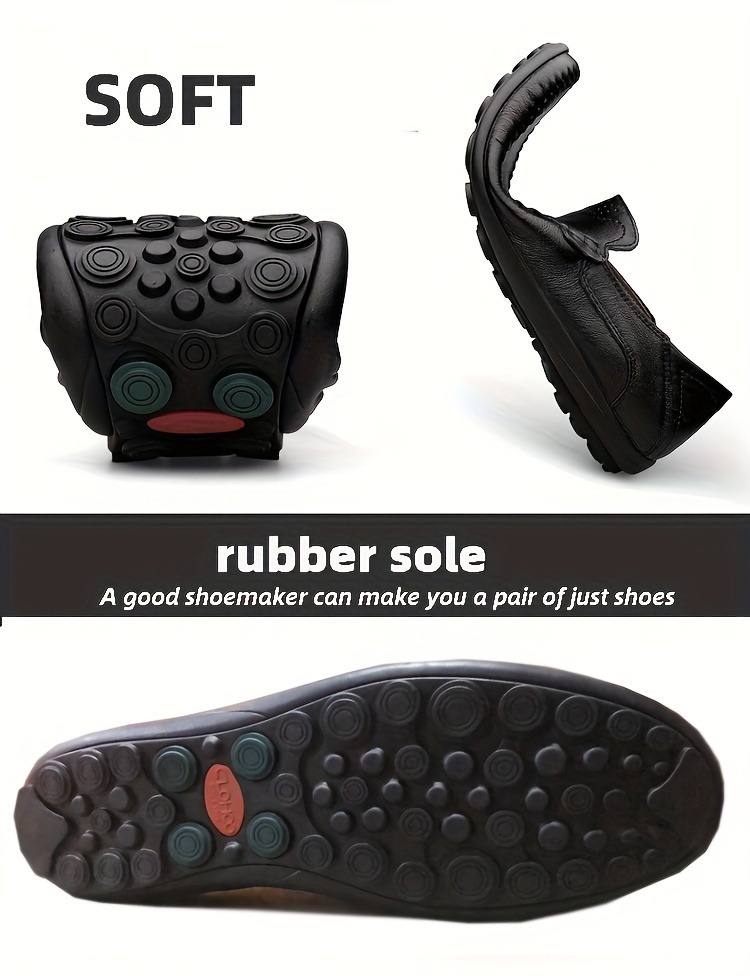 CLOHOO Brendi Ikki qatlamli sigir terisi, kauchuk pastki qismi, qo'l bilan tikilgan, erkaklar uchun slip-on loafers