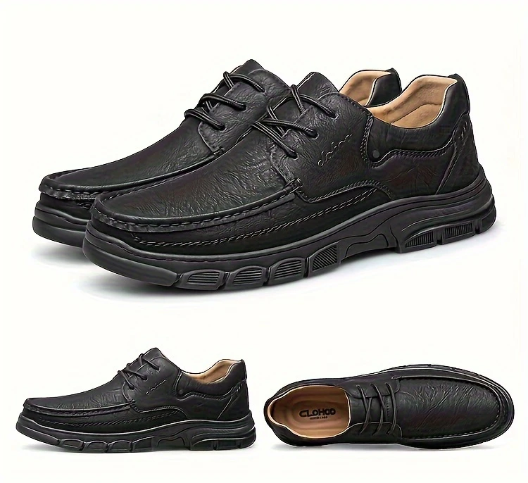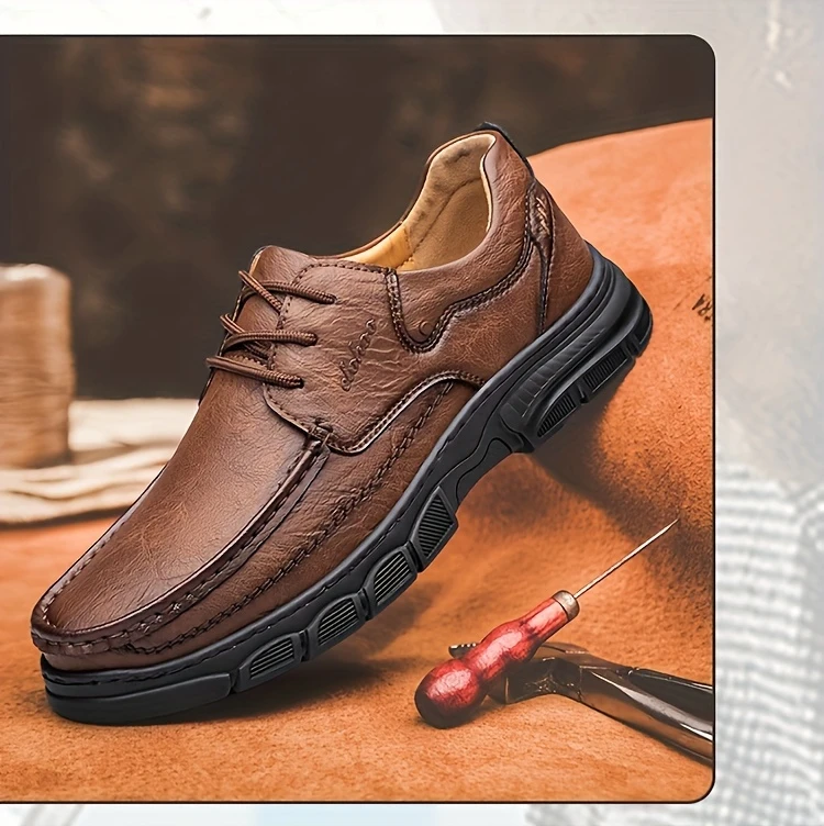 CLOHOO Erkaklar Qo'lda Yasalgan Loferlari: Yumshoq kauchuk taglikka ega, nafas oladigan, qulay kundalik poyabzal, jigarrang rangdagi tikilgan PU yuqori qismi, kundalik yoki rasmiy kiyimlar uchun shoelace dizayni.