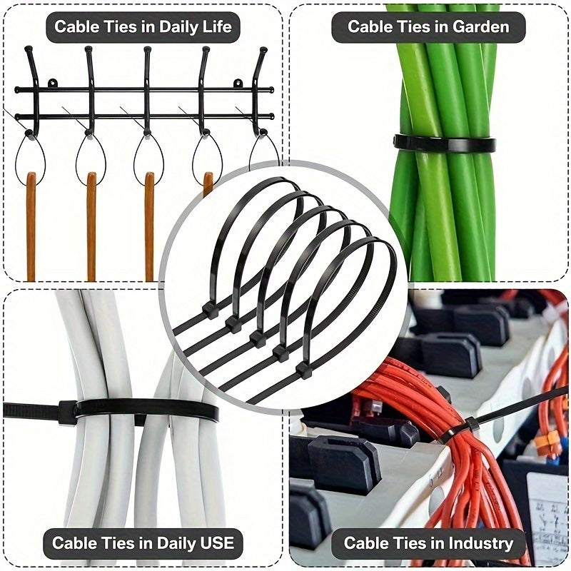 500 dona Nilon kabel kliplar, turli o'lchamlarda, ichki va tashqi foydalanish uchun, egilishga chidamli
