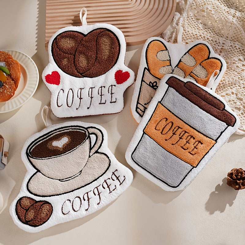 Kofe naqshli qo‘l sochiq Coral velur Tez quriydigan, namlikni o‘ziga singdiradigan oshxona va hammom sovg‘asi