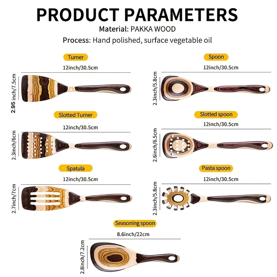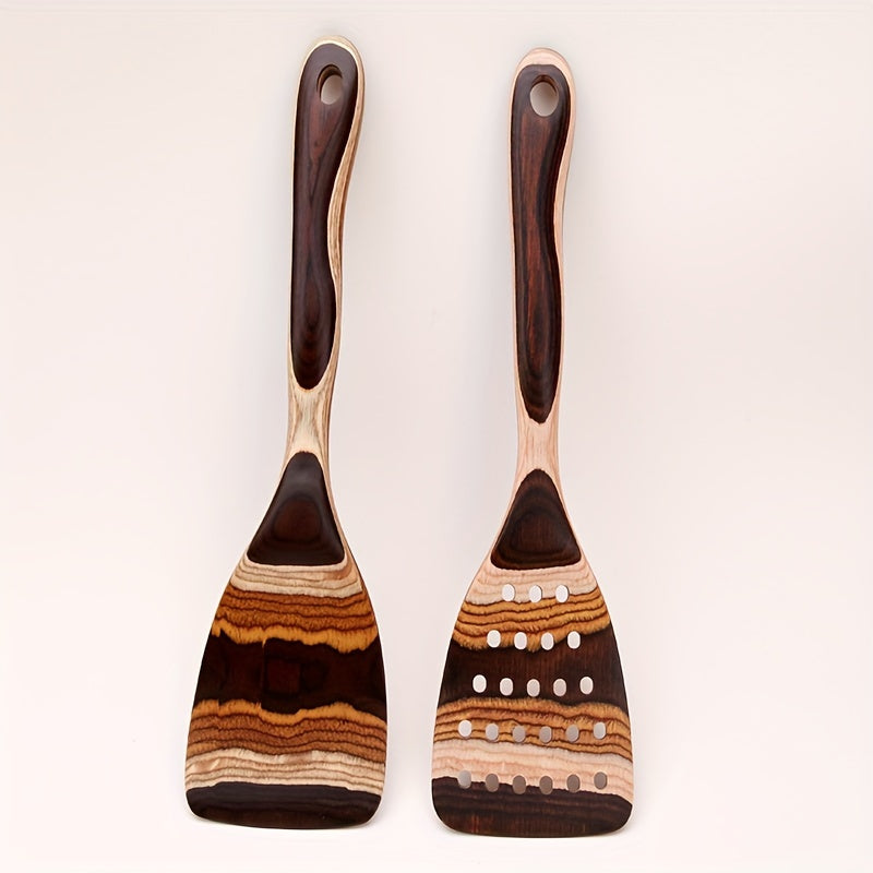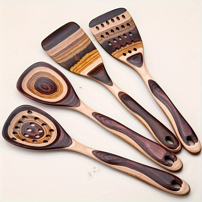 Yog'ochdan yasalgan oshxona asboblari to'plami, Pakkawood qoshig'i va turli oshxona asboblari bilan, ommaviy xarid qilish uchun mavjud.