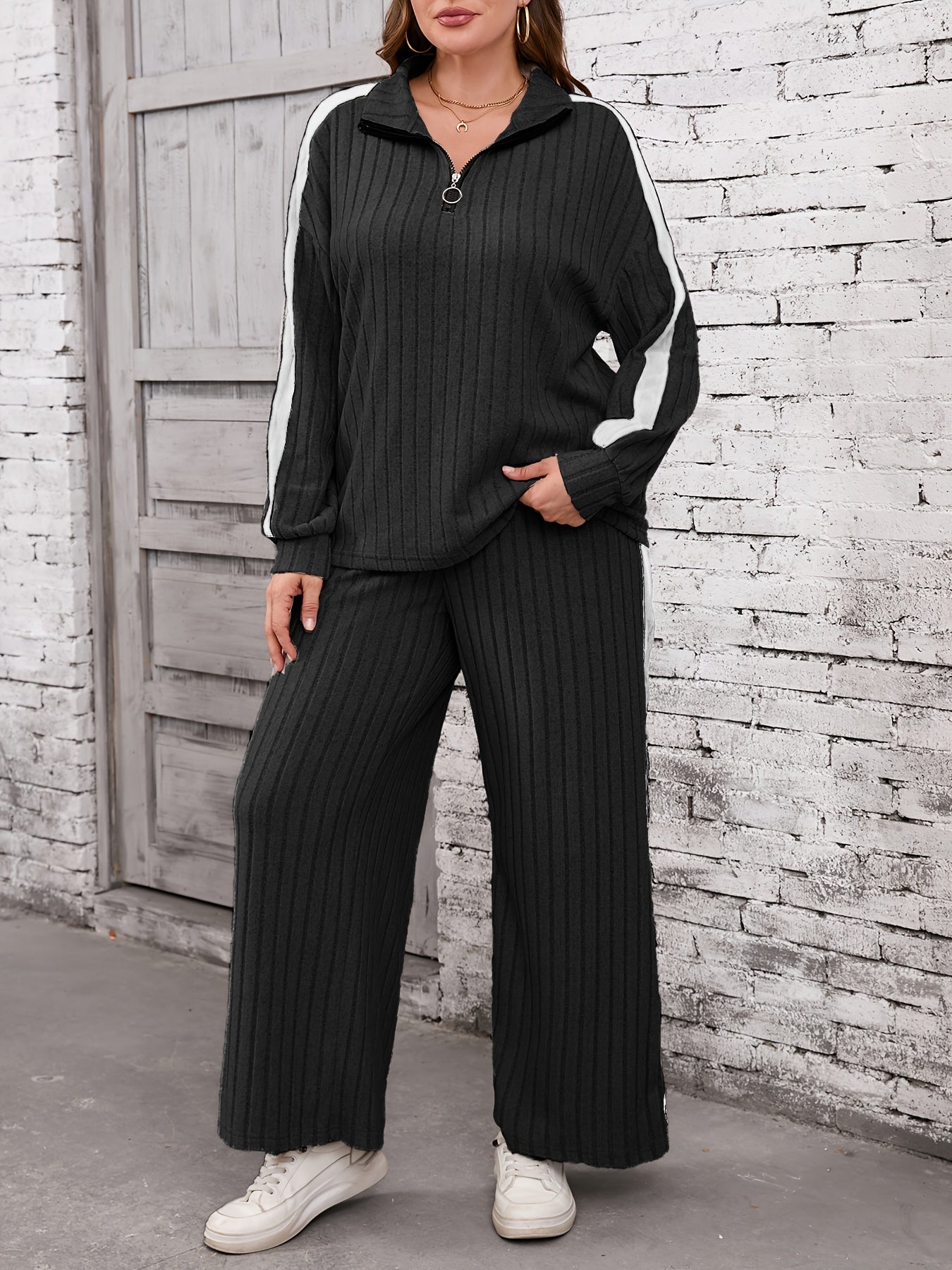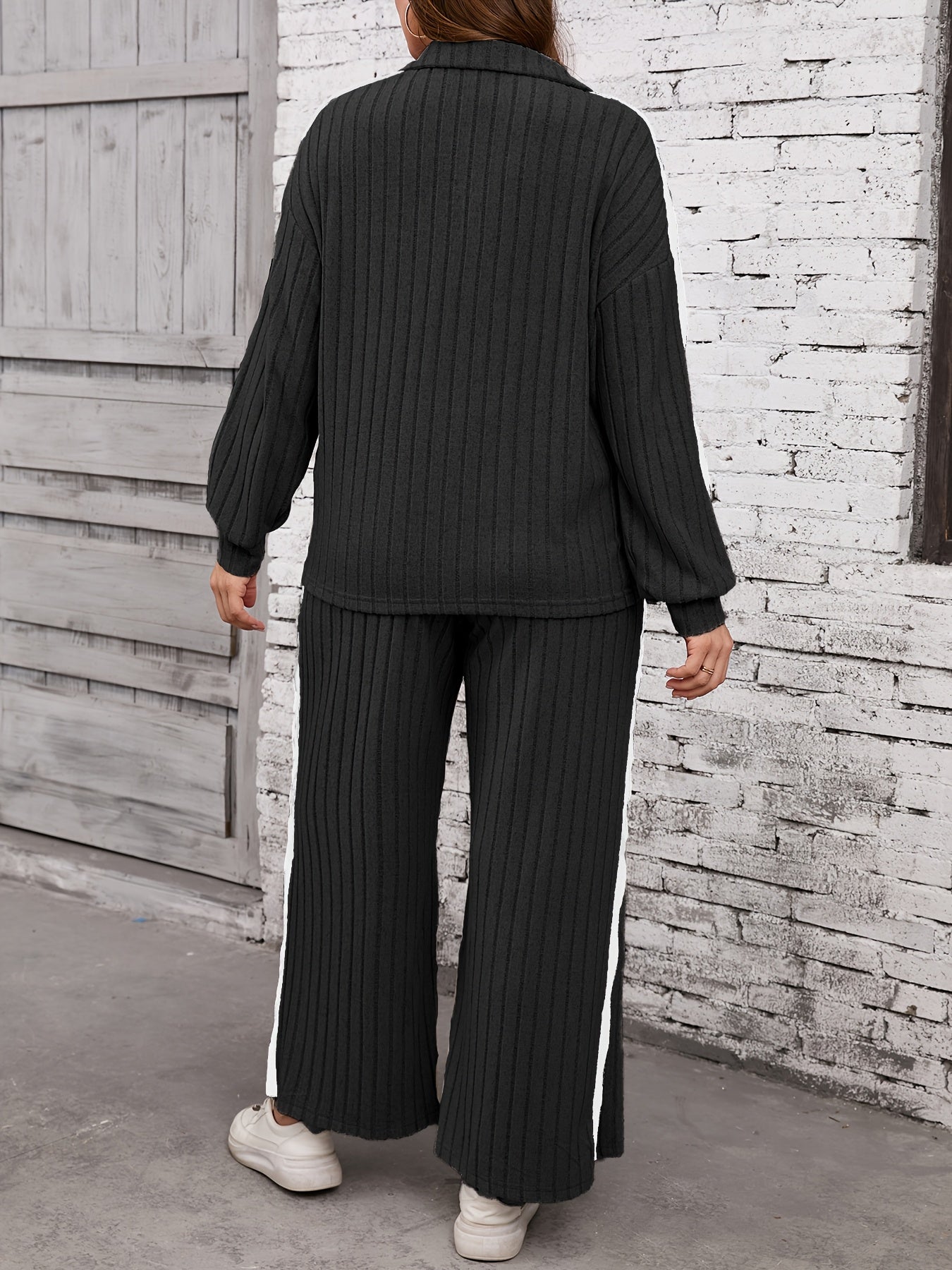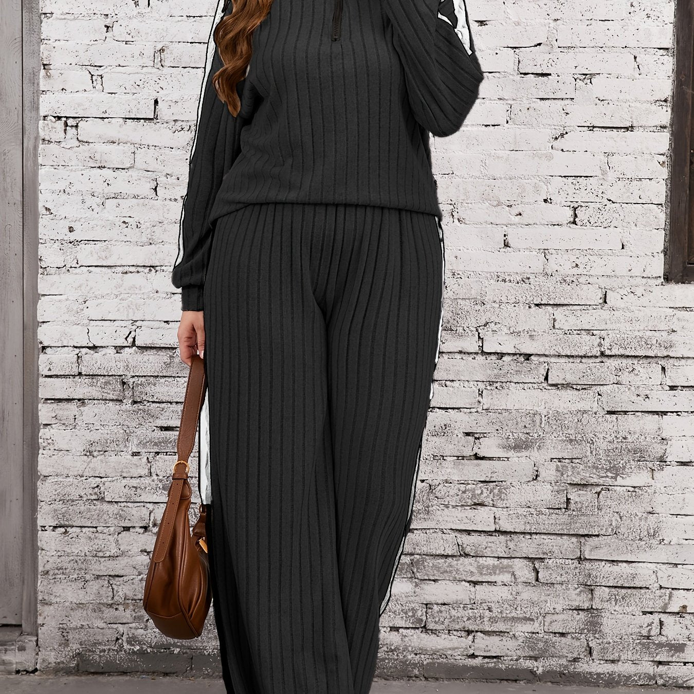 Kuz uchun uzun yengli ko'ylak va shimlar bilan rangli blokli shimlar to'plami, kattalar uchun ayollar kiyimlari.