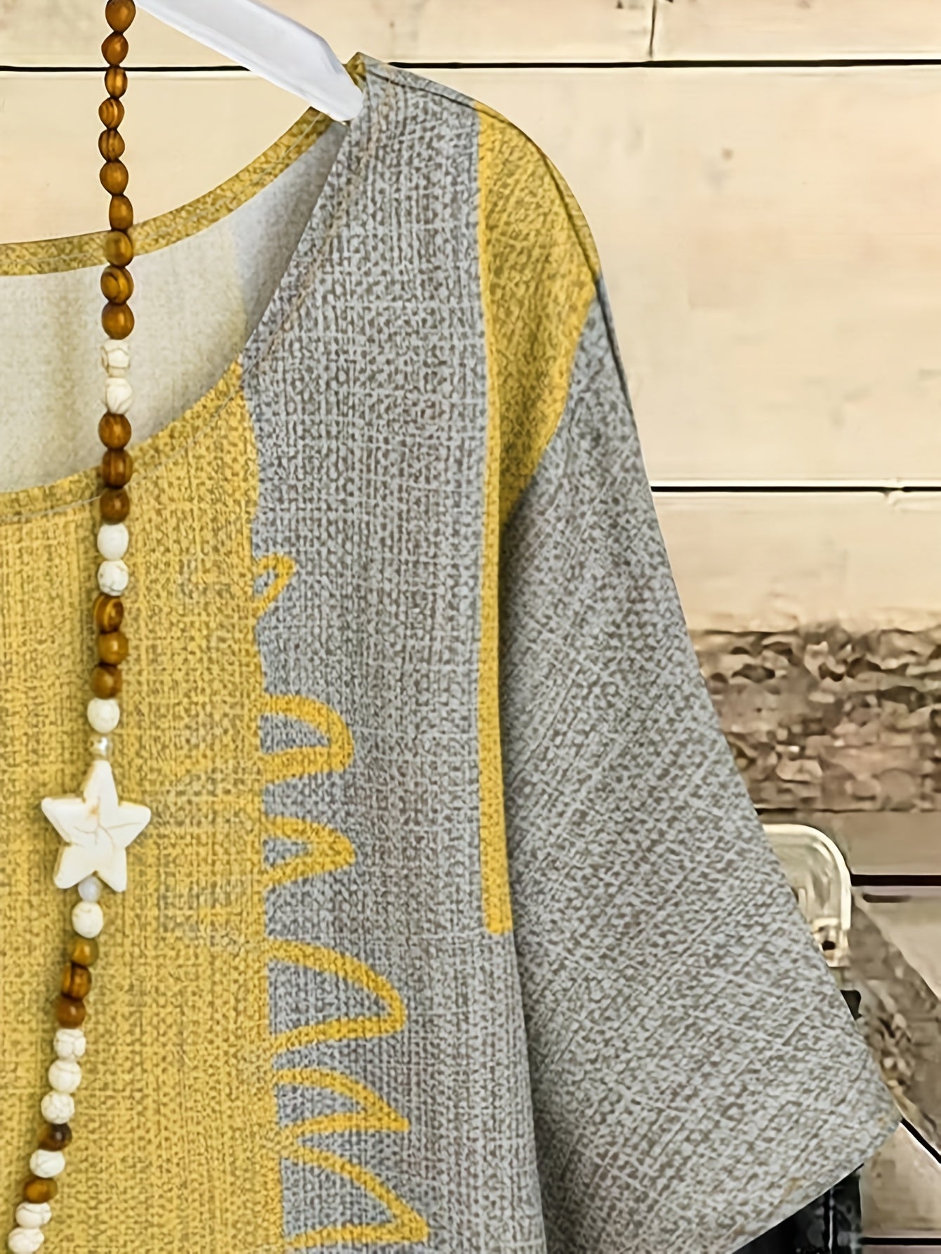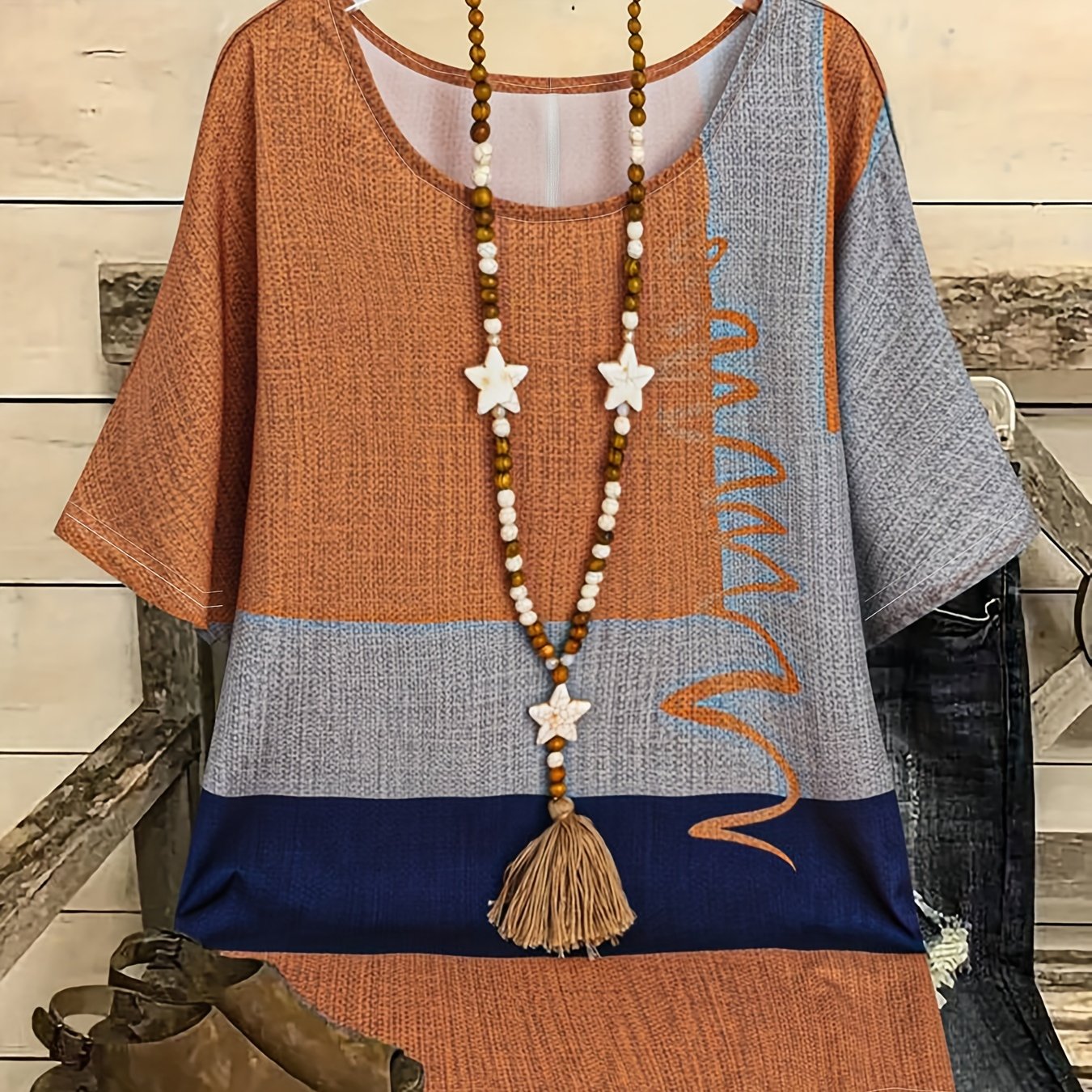 Rangli Blok Katta O'lchamdagi Bluzka, Yumshoq Bo'yin - Yengil va Zamonaviy, Har Mavsum uchun Mukammal, Mashinada Yuvish Mumkin
