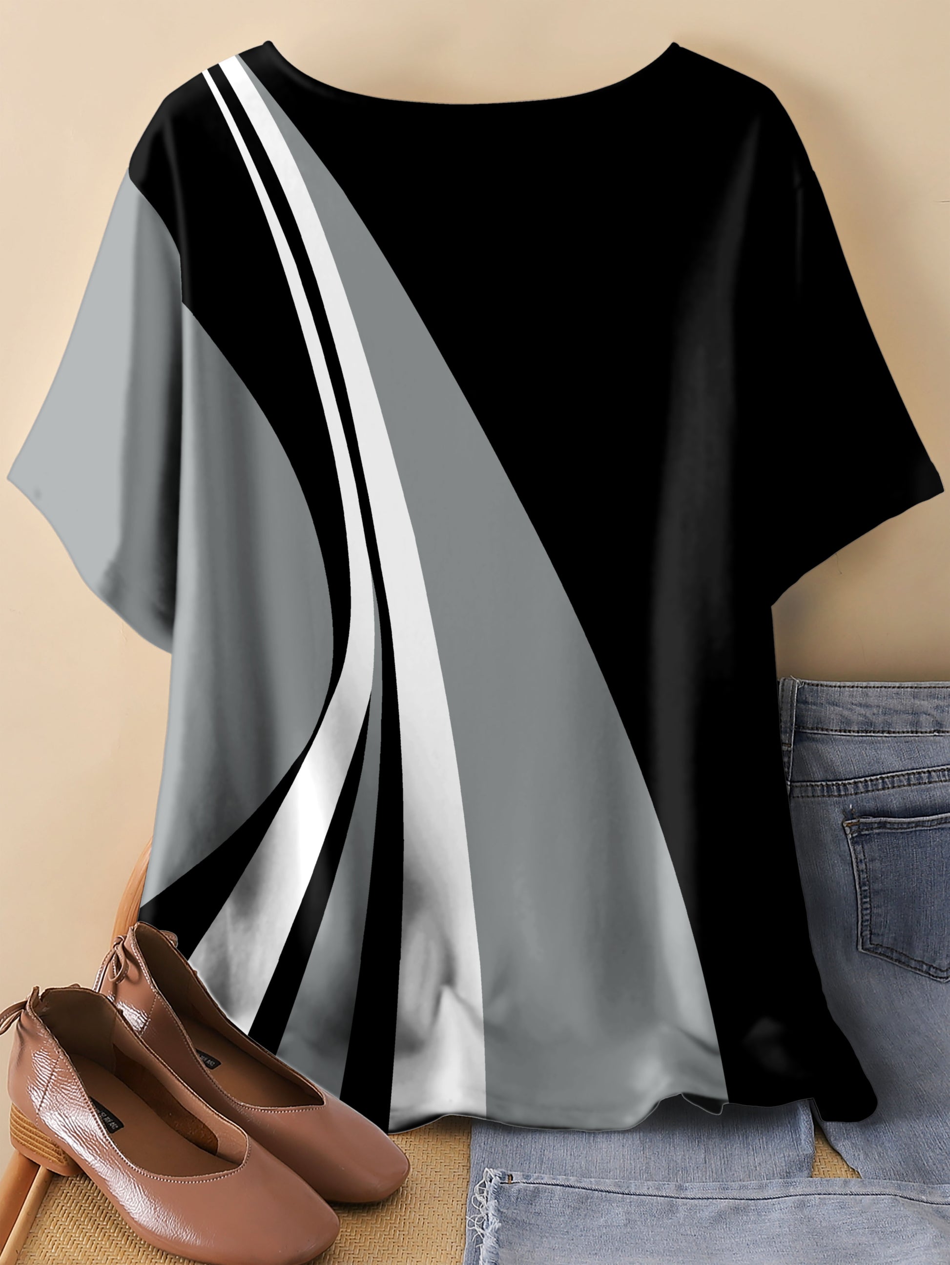 Bahor va yoz uchun rangli blokli T-ko'ylak, ayollar uchun plussiz top