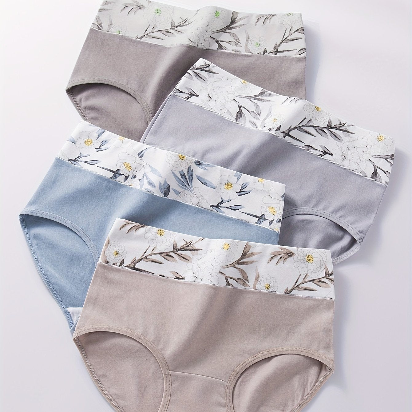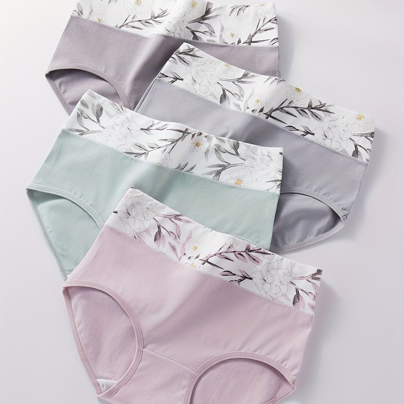 Rangli blokli gullar printi bilan tikilgan briflar - Qulay, nafas oladigan, cho'ziluvchan ayollar ichki kiyimlari