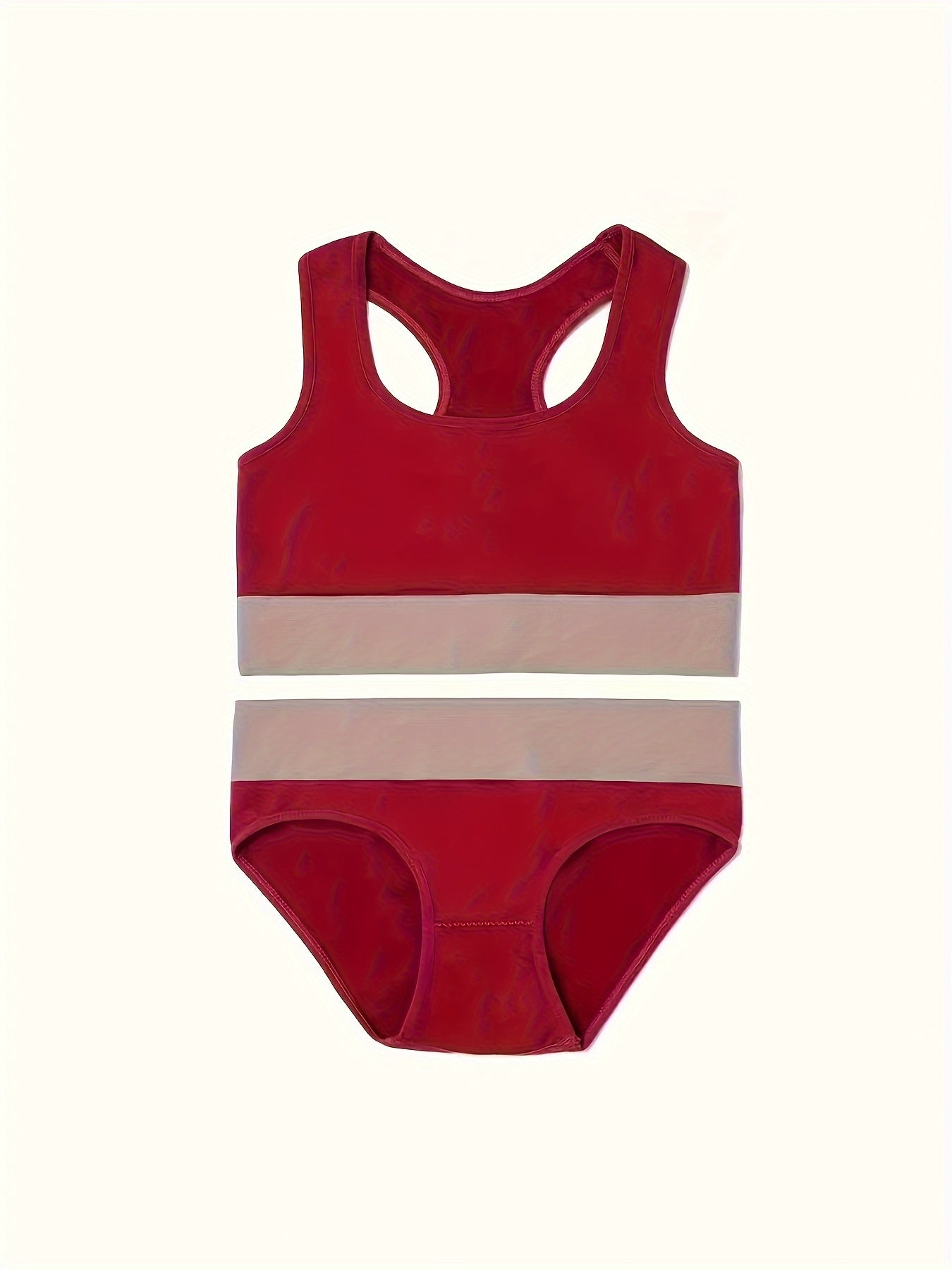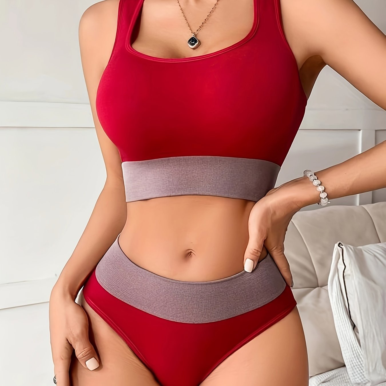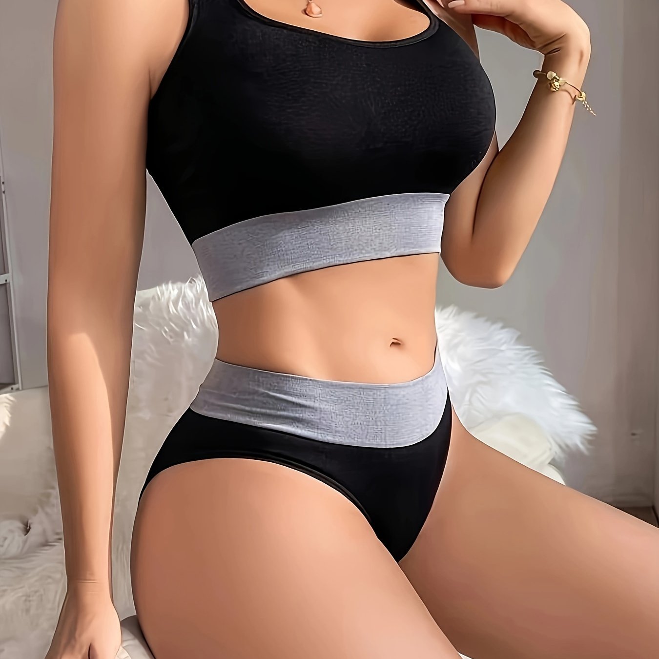 Ayollar uchun rangli blokli, tikuvsiz sport brassu va ichki kiyim to'plami, yuqori qo'llab-quvvatlovchi, ko'rinmaydigan nylon-elastan aralashmasidan tayyorlangan.
