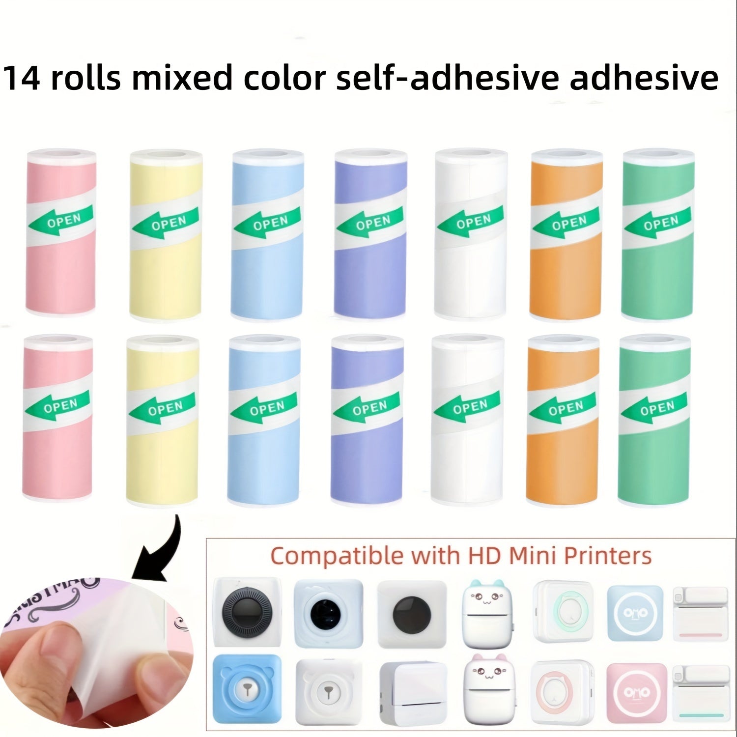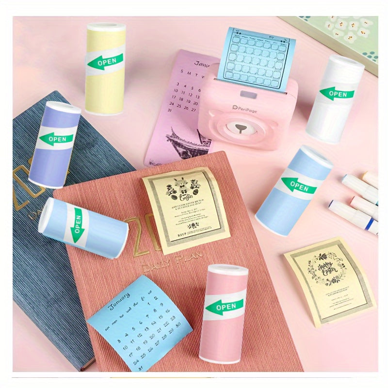 Rang-barang yopishqoq stiker rulolari 57x25mm yaltiroq, kompostlanadigan, mini printerlar uchun fotosuratlar, eslatmalar