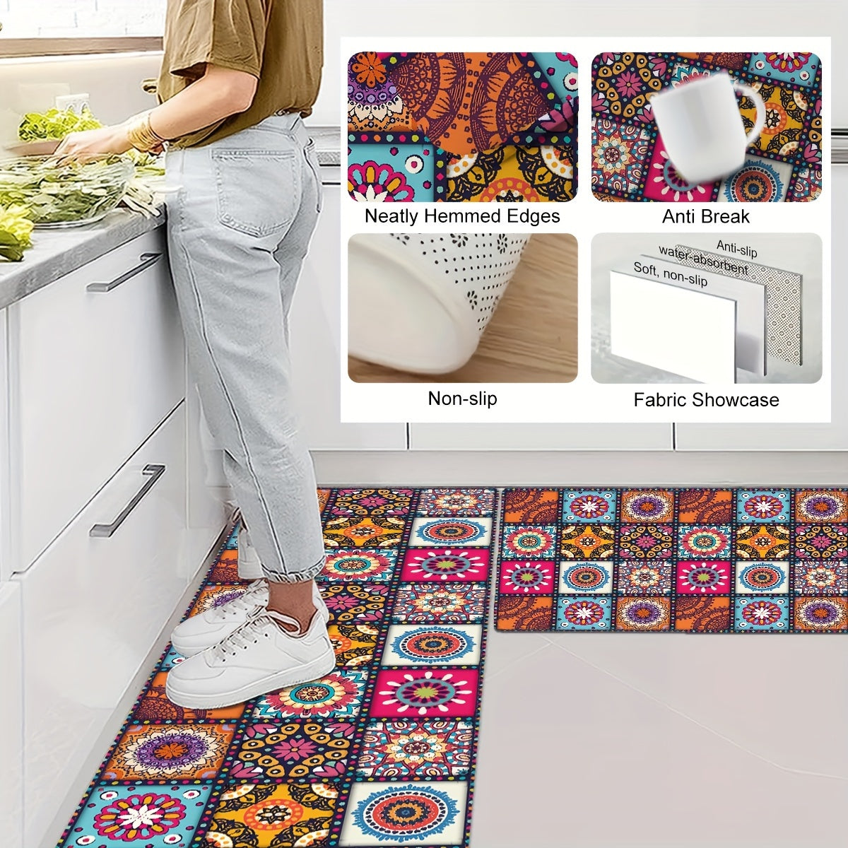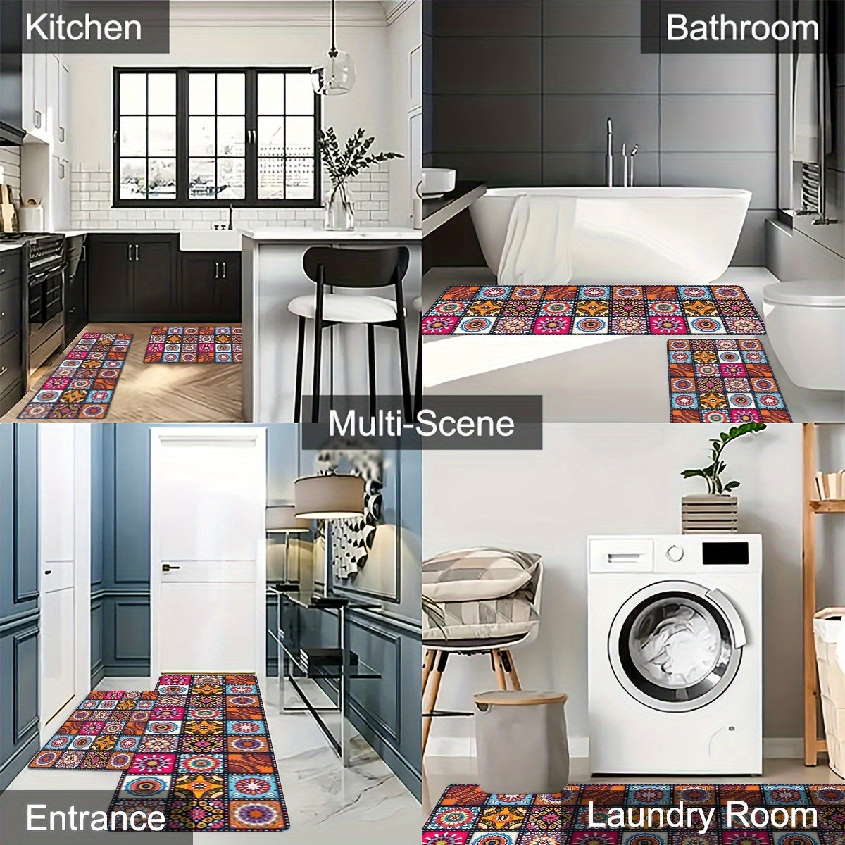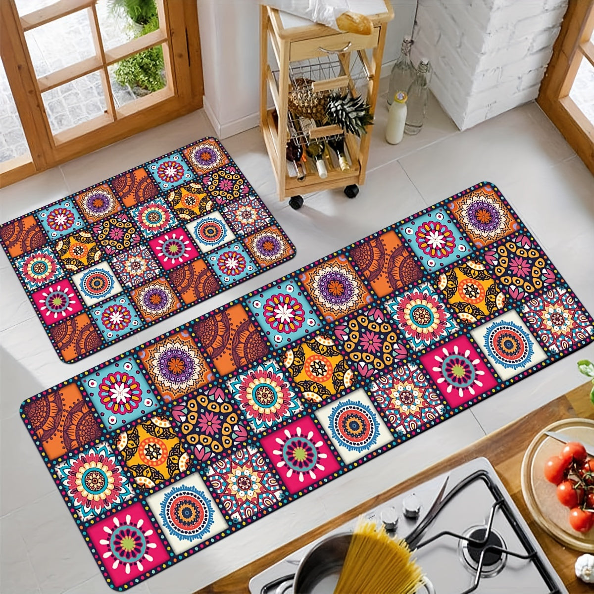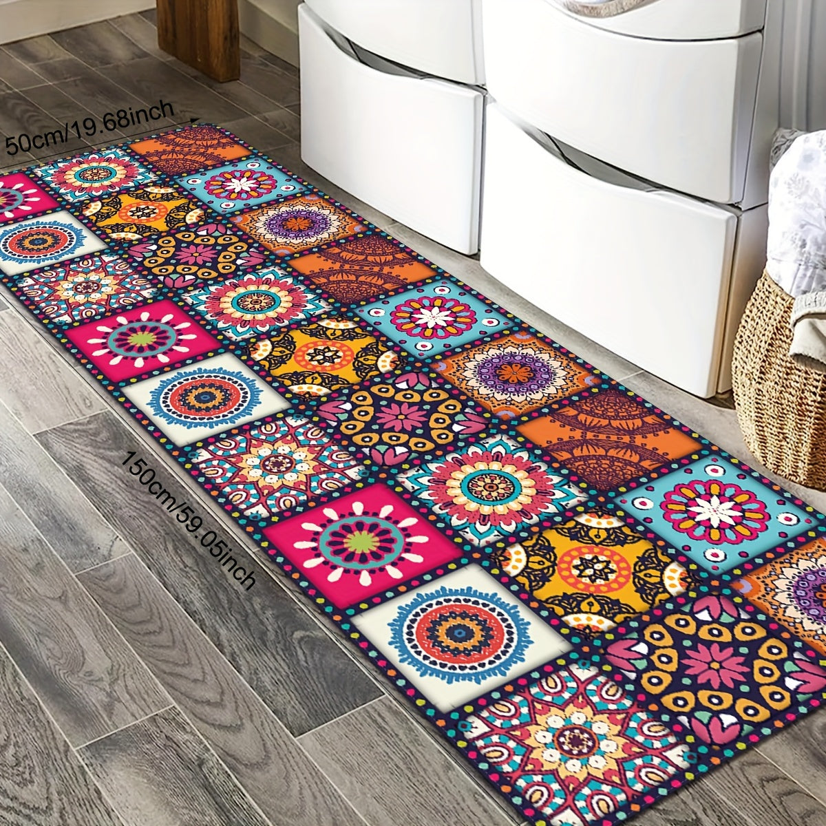 Rang-barang Boho oshxona matosi, sirgʻalmas, yogʻga chidamli kirish matosi, oshxona, yotoqxona, hammom uchun