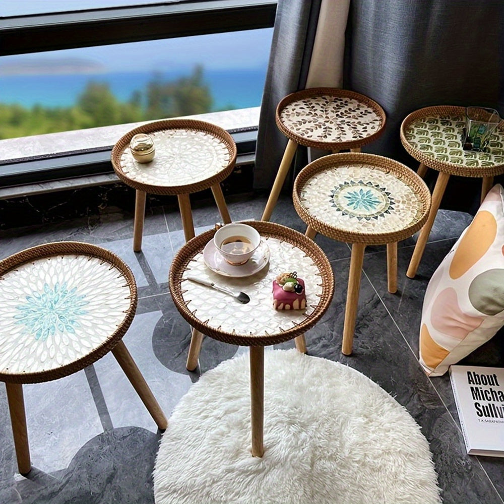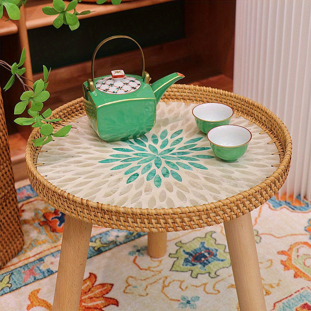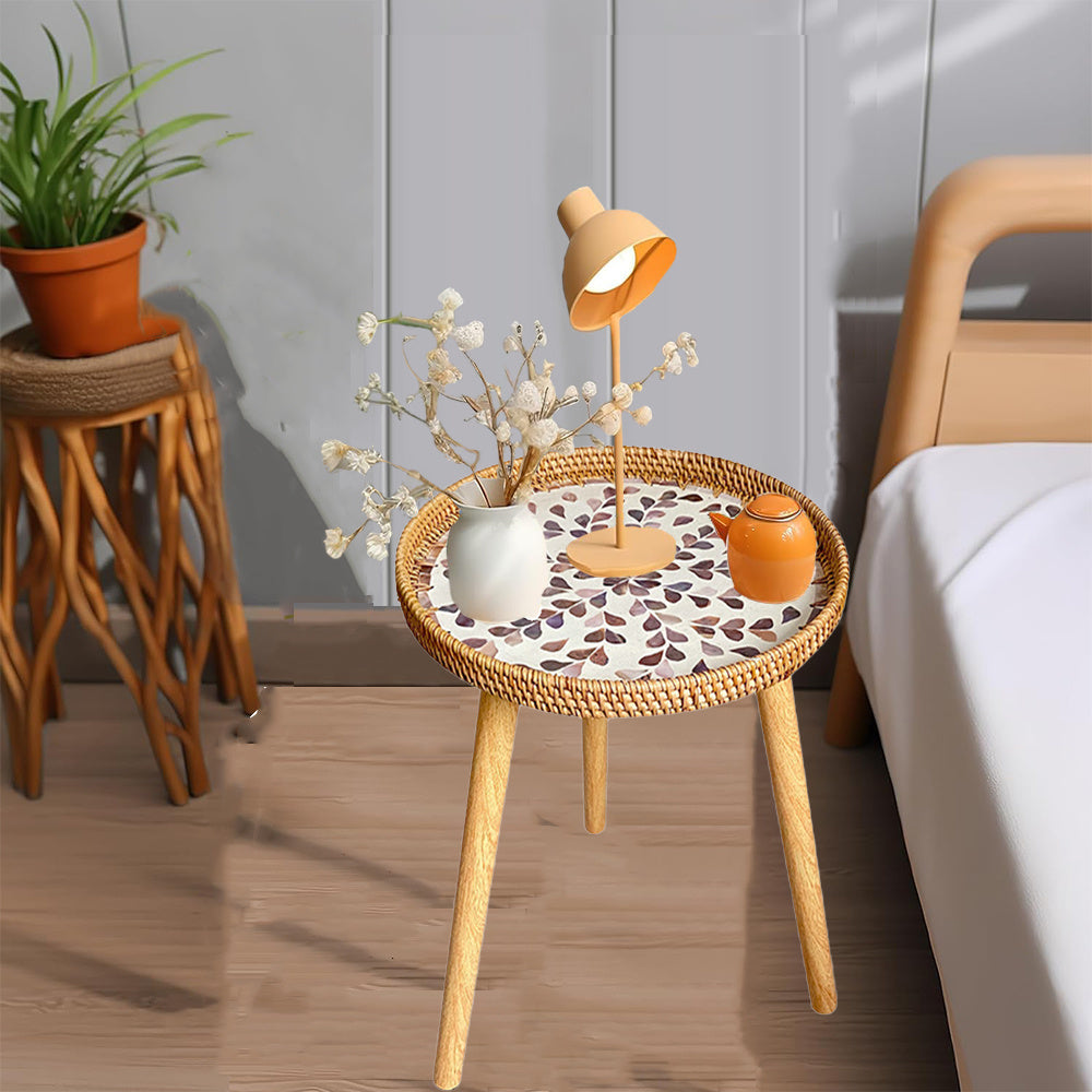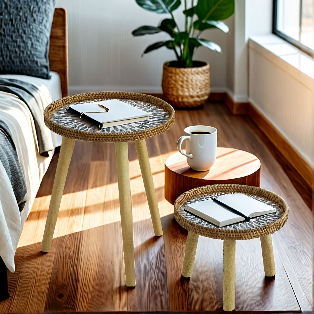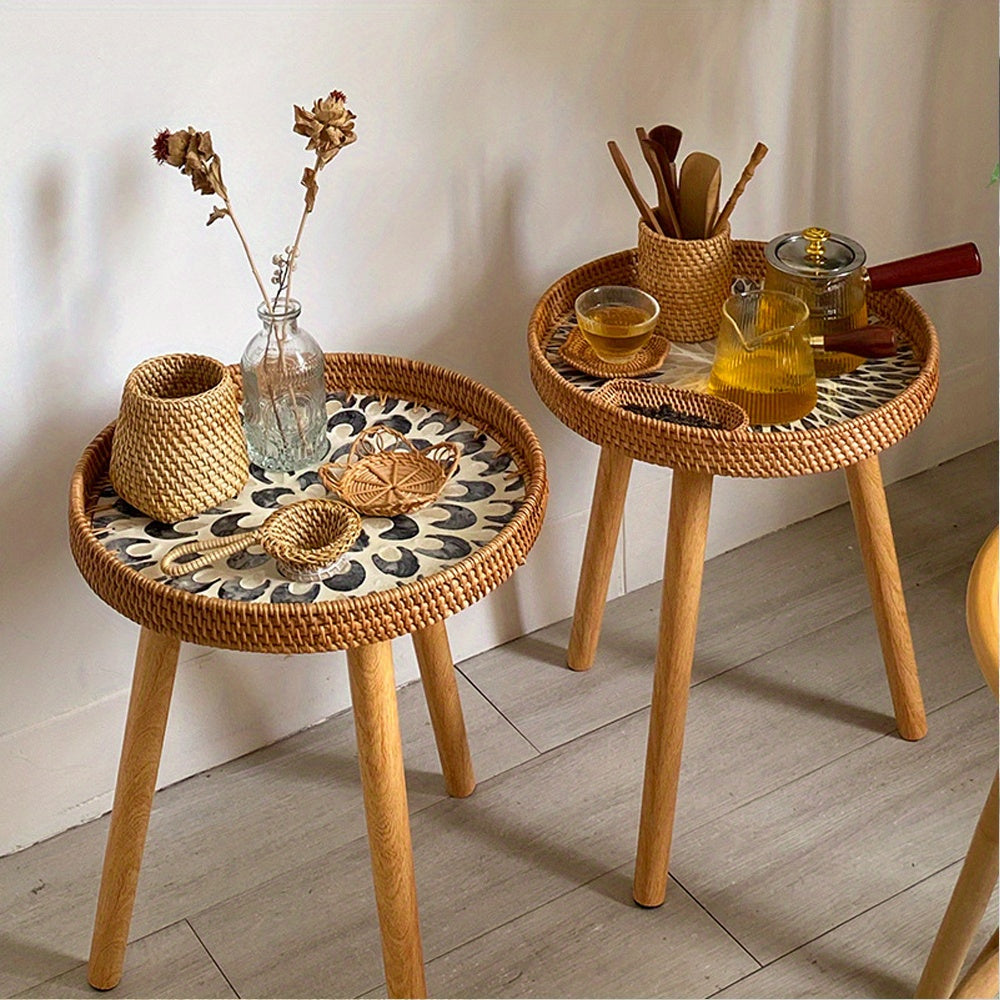 Yorqin zamonaviy rattan kofe stoli va saqlash joyi bilan yashash xonasi uchun