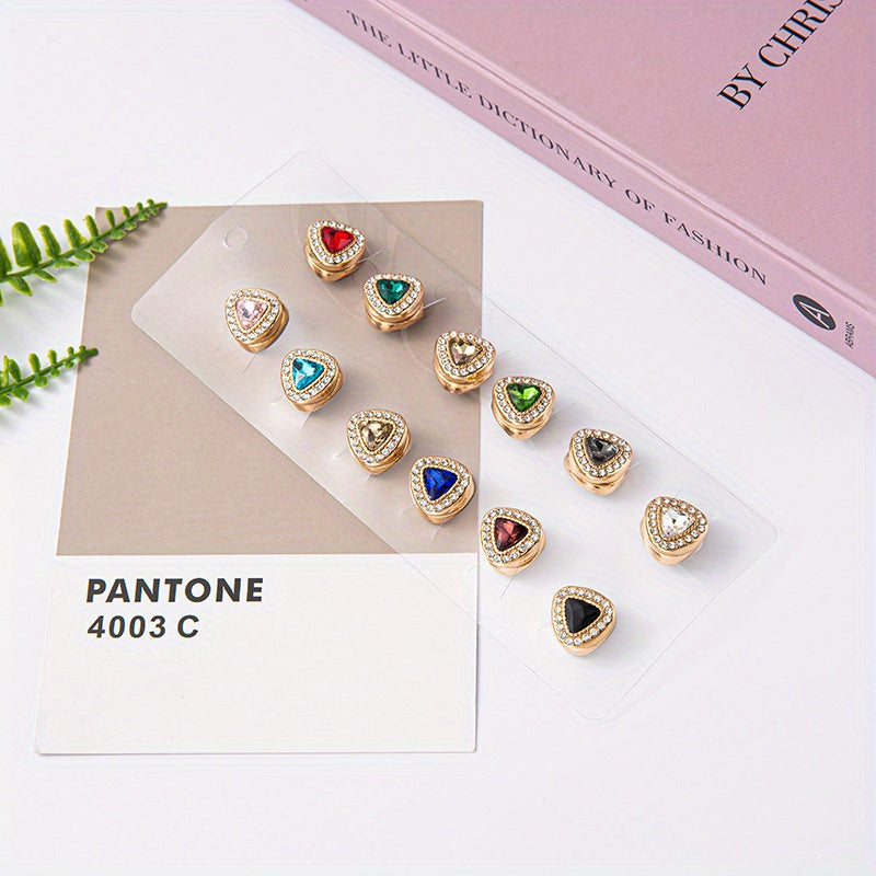 Rang-barang yurak shaklidagi magnitli hijab ignalari, rhinestones bilan, 12 ta to'plam