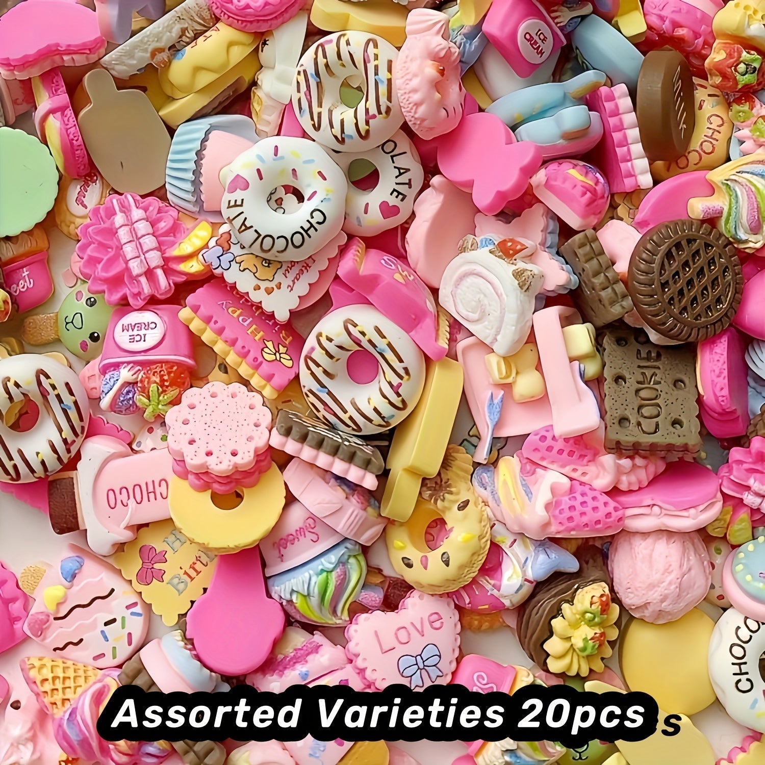 Rang-barang resin shirinlik charms to'plami, 20, 50 yoki 100 ta, DIY soch uchlari, telefon qoplamalari, gelinlik san'ati uchun