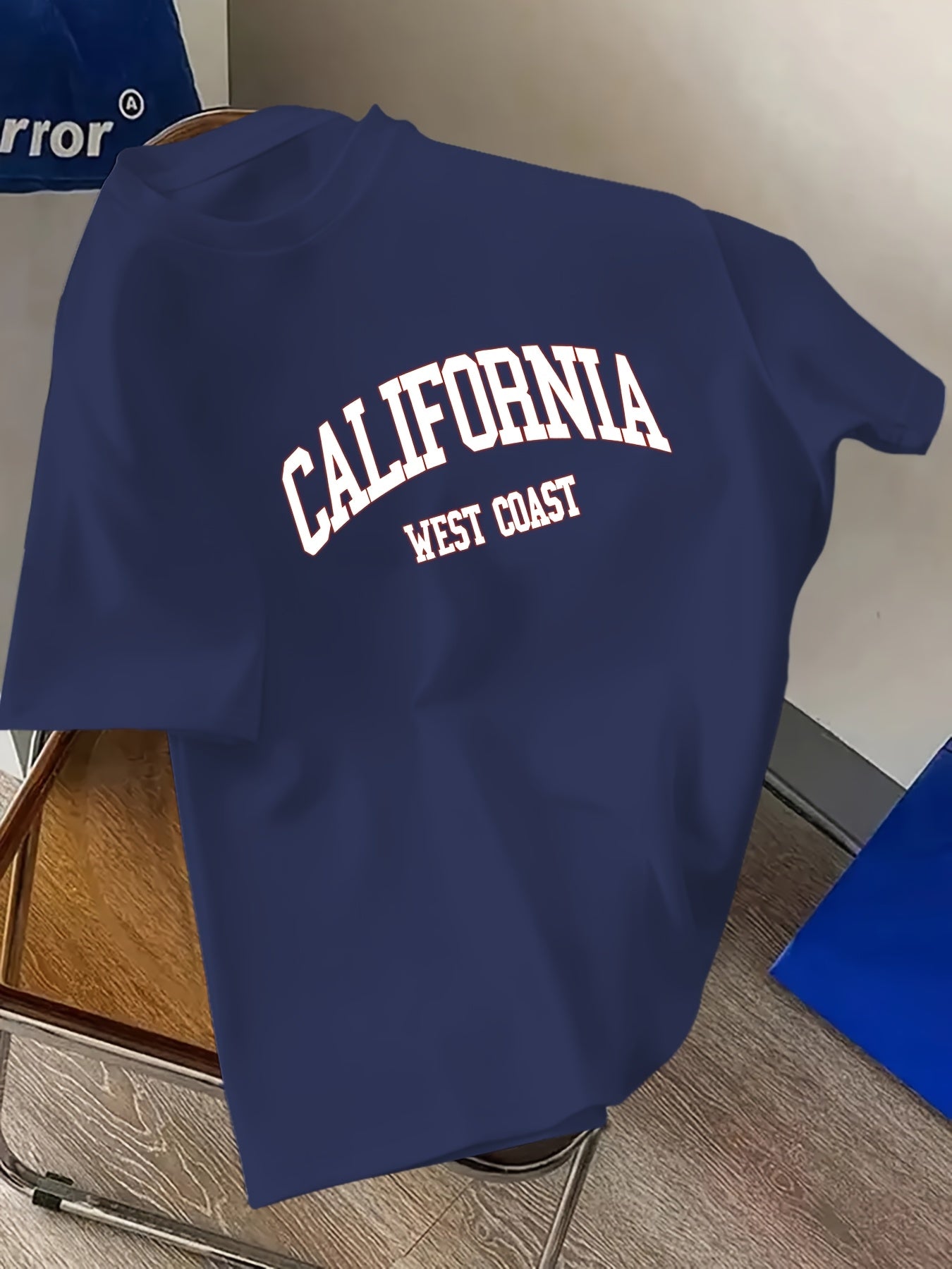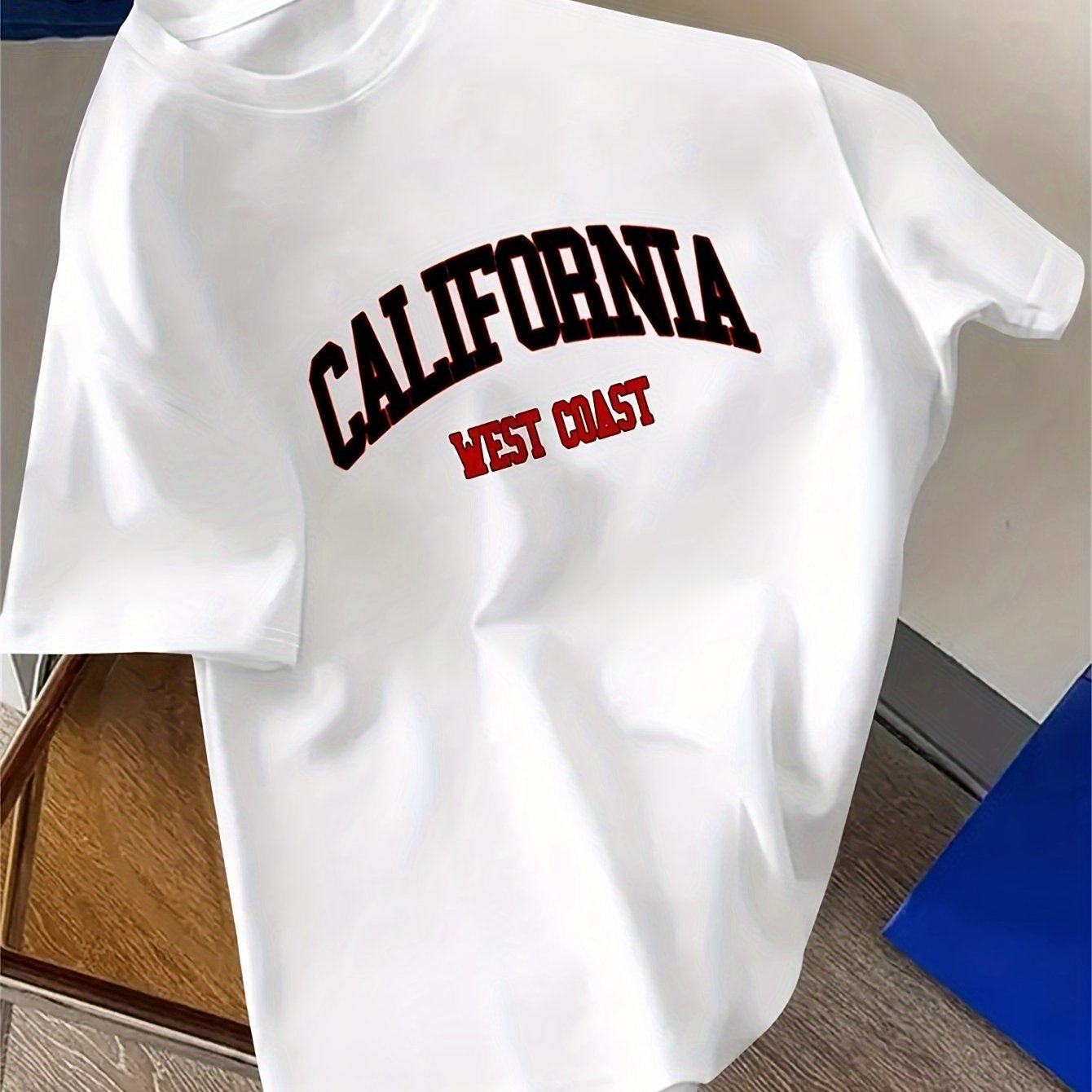 Qulay va yumshoq erkaklar uchun grafik Kaliforniya printli futbolka, zamonaviy uslub va oddiy moslik bilan.