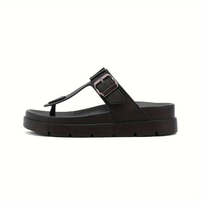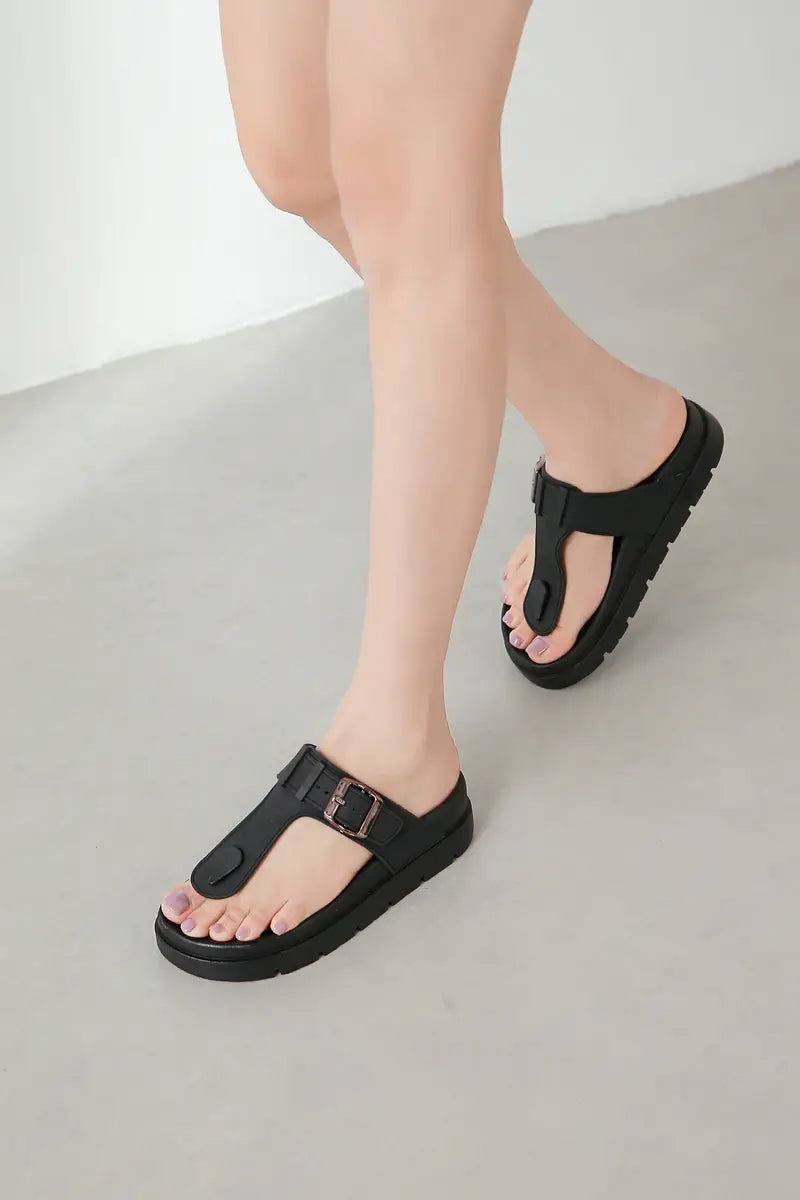 Ayollar uchun qulay bir rangli flip-floplar, qisqa barmoqli yozgi poyabzal, tokali tasma tafsiloti bilan
