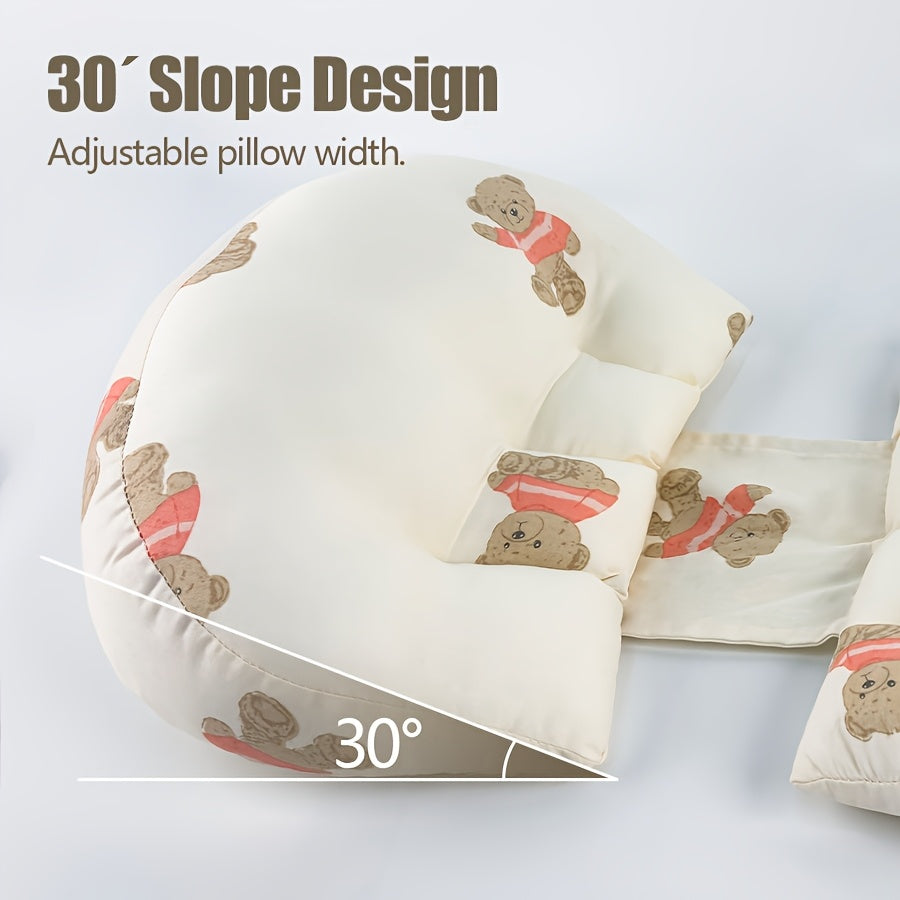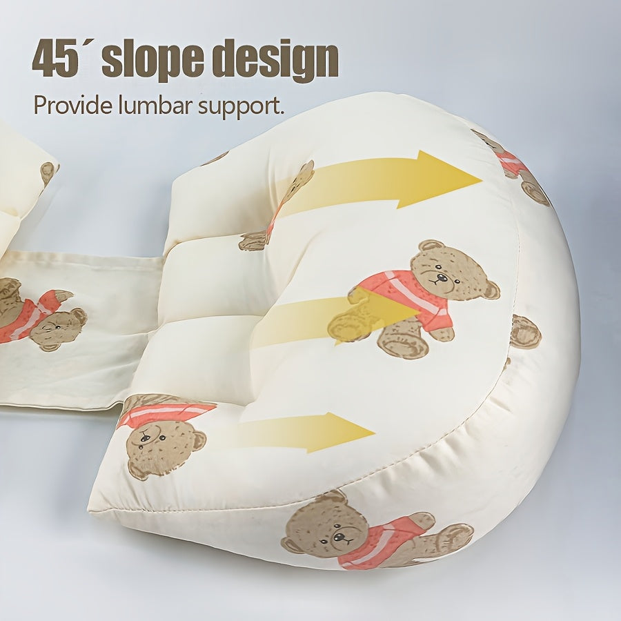 Qulay U-shakli homiladorlik yostiqchasi, sozlanadigan yon yotish qo'llab-quvvatlashi va 30° qiyalik dizayni, qorin va orqa qulayligi uchun polyester tolalaridan tayyorlangan