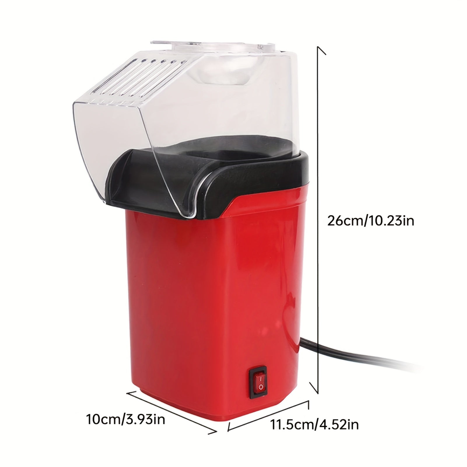 1100W yog'siz elektr popcorn tayyorlagich, shaffof konteyner va qora dozator bilan