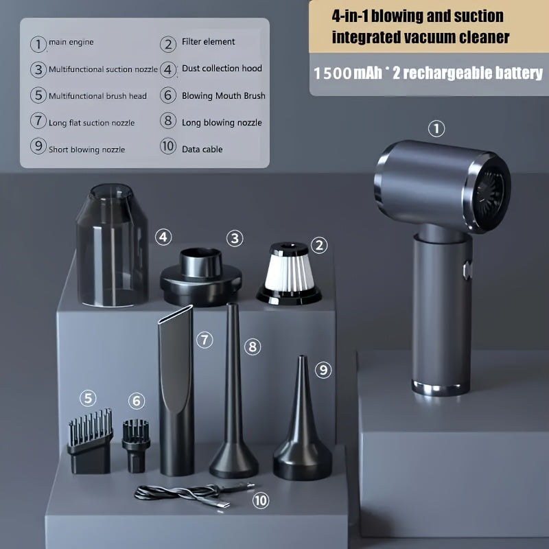 Kompakt 3-in-1 Avtomobil changyutgichi, 4000Pa tortish kuchi bilan, USB bilan quvvatlanadigan, avtomobil va uy uchun detailing