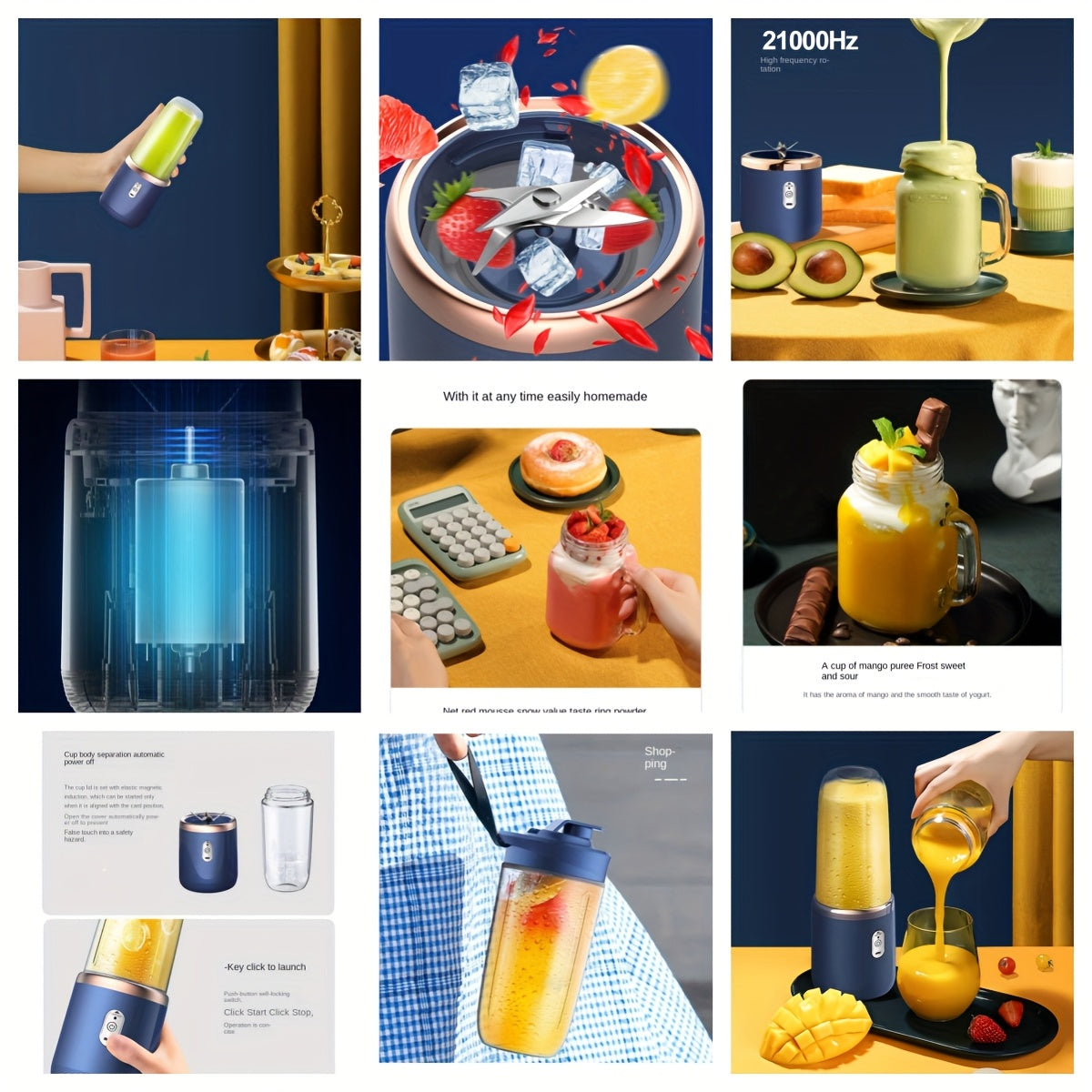 Portativ ikki stakanli sharbat chiqaruvchi, USB orqali quvvatlanadigan batareyali, kichik va bardoshli