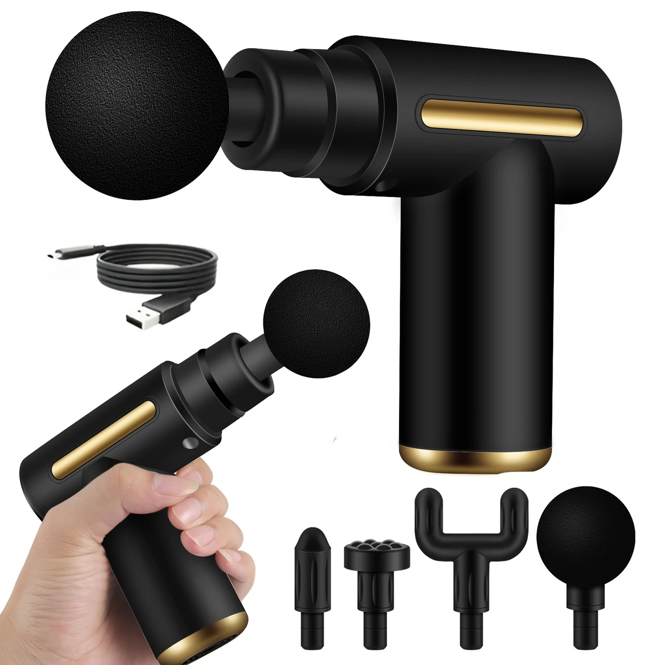 Kichik dizayndagi portativ zaryadlanadigan tana massajeri, 4 ta almashtiriladigan boshli bilan, erkaklar va ayollar uchun ultra-ovozsiz mushak quroli, to'liq tana massaji, dam olish va qo'l bilan urish uchun ideal.