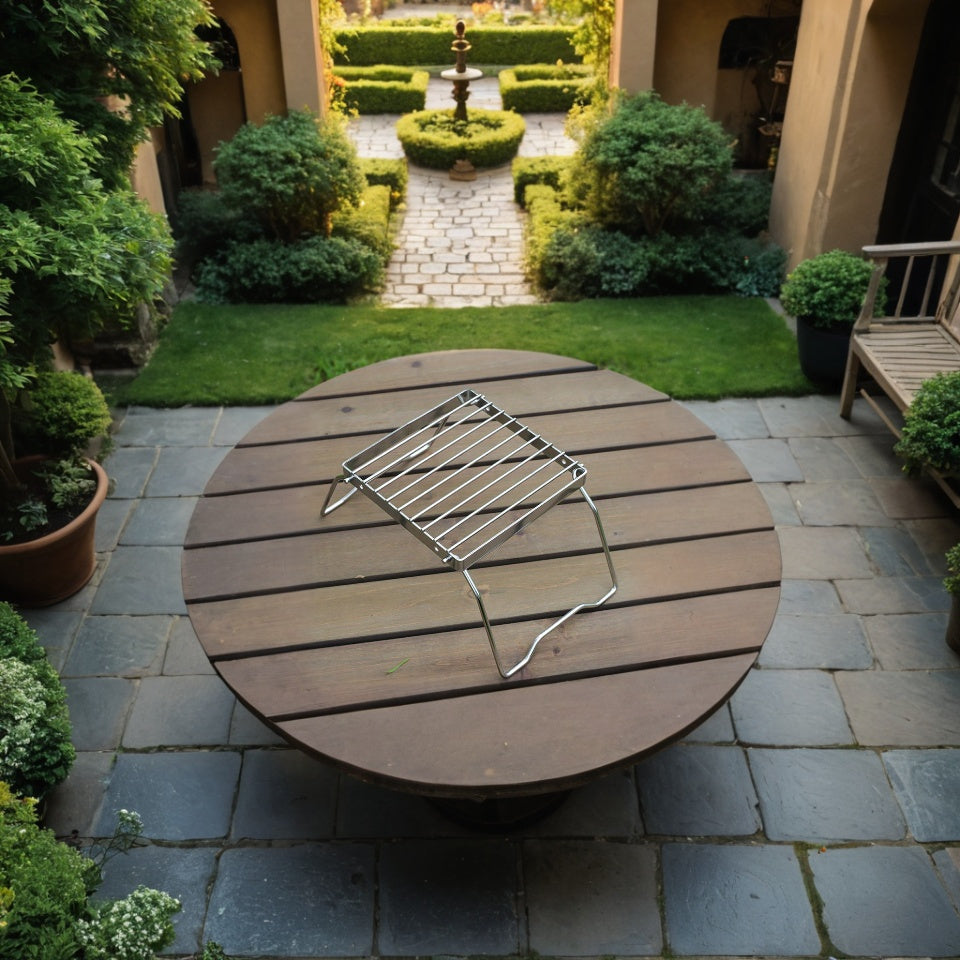 Tashqarida pishirish va BBQ uchun barqarorlashtiruvchi oyoqlarga ega kompakt zanglamaydigan po'latdan yasalgan sayohat grill.