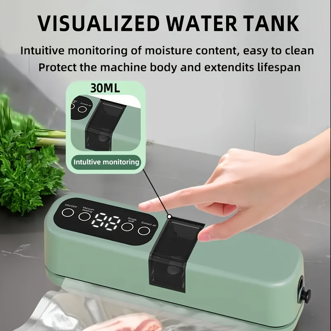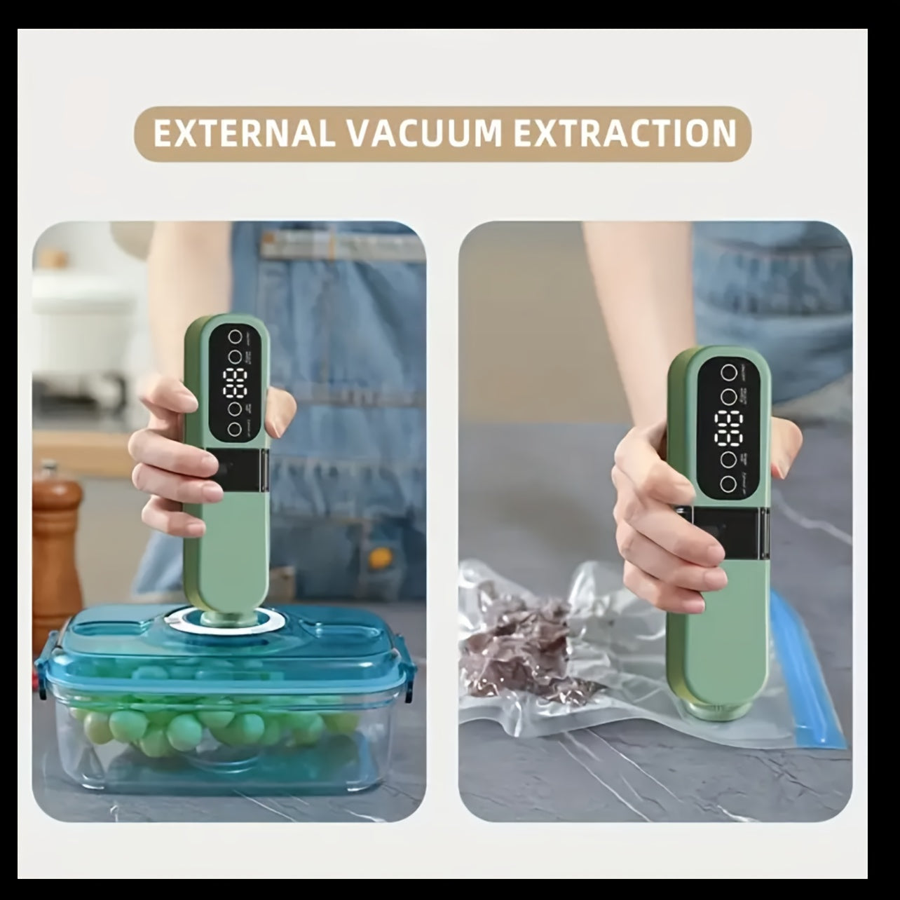 Uyda yoki sayohatda quruq va nam oziq-ovqatlarni saqlash uchun kompaktdir USB qayta zaryadlanadigan vakuum yopishtiruvchi 1200mAh batareya