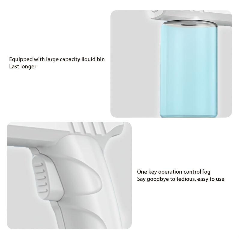 Kompakt simsiz qo'l purkagichi, USB orqali zaryadlanadigan 1200mAh batareya, ko'k yorug'lik texnologiyasi, uyda, ofisda, maktabda va turli holatlarda samarali foydalanish uchun nano darajadagi atomizatsiya.