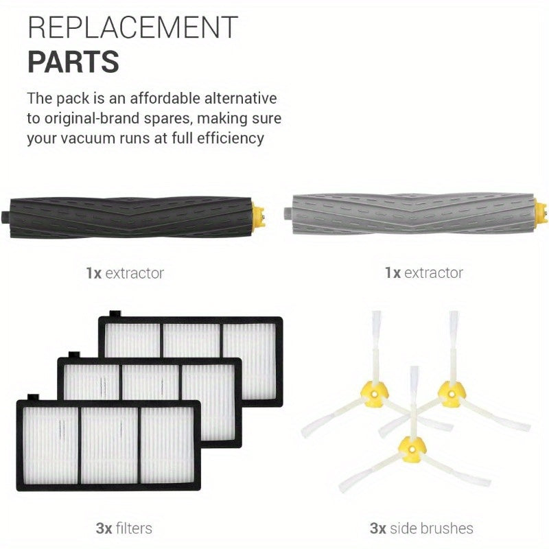 iRobot vakuum uchun mos keladigan almashtirish qismlari - 800/900 seriyalari, 2 ta asosiy cho'tka, 3 ta filtr, 3 ta yon cho'tka va ekstraktor, 8 dona to'plam