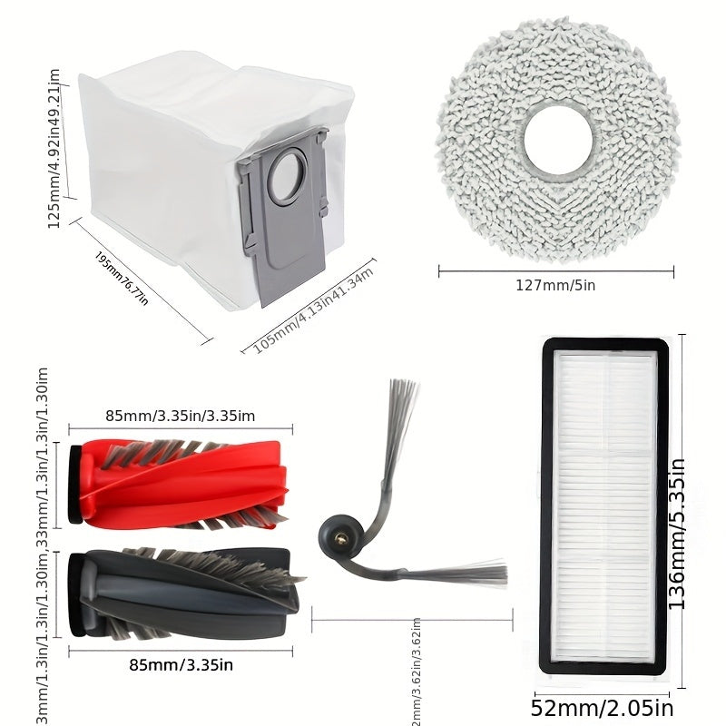 Roborock Q revo Curve/P20 Pro robot tozalagichlari bilan mos keladigan ushbu aksessuar to'plami asosiy rolik cho'tkasi, chang sumkasi, filtr matosi va chekka cho'tkasini o'z ichiga oladi.