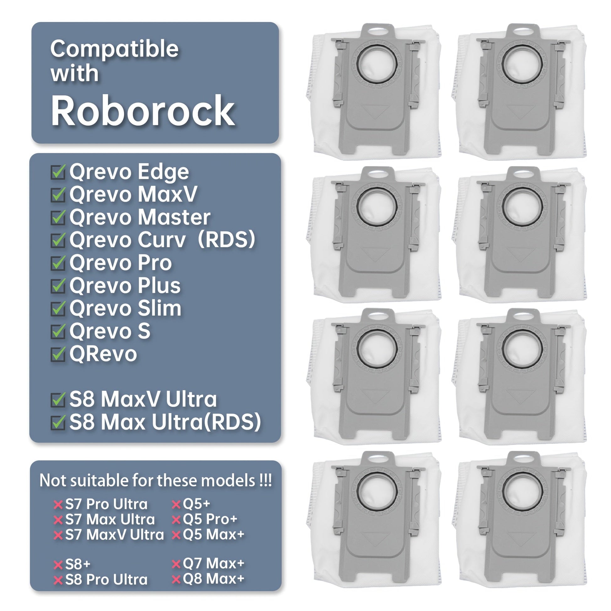 Roborock Qrevo va S seriyali uchun premium chang yig'ish sumkalar, 8 ta paket, 2.7L hajm
