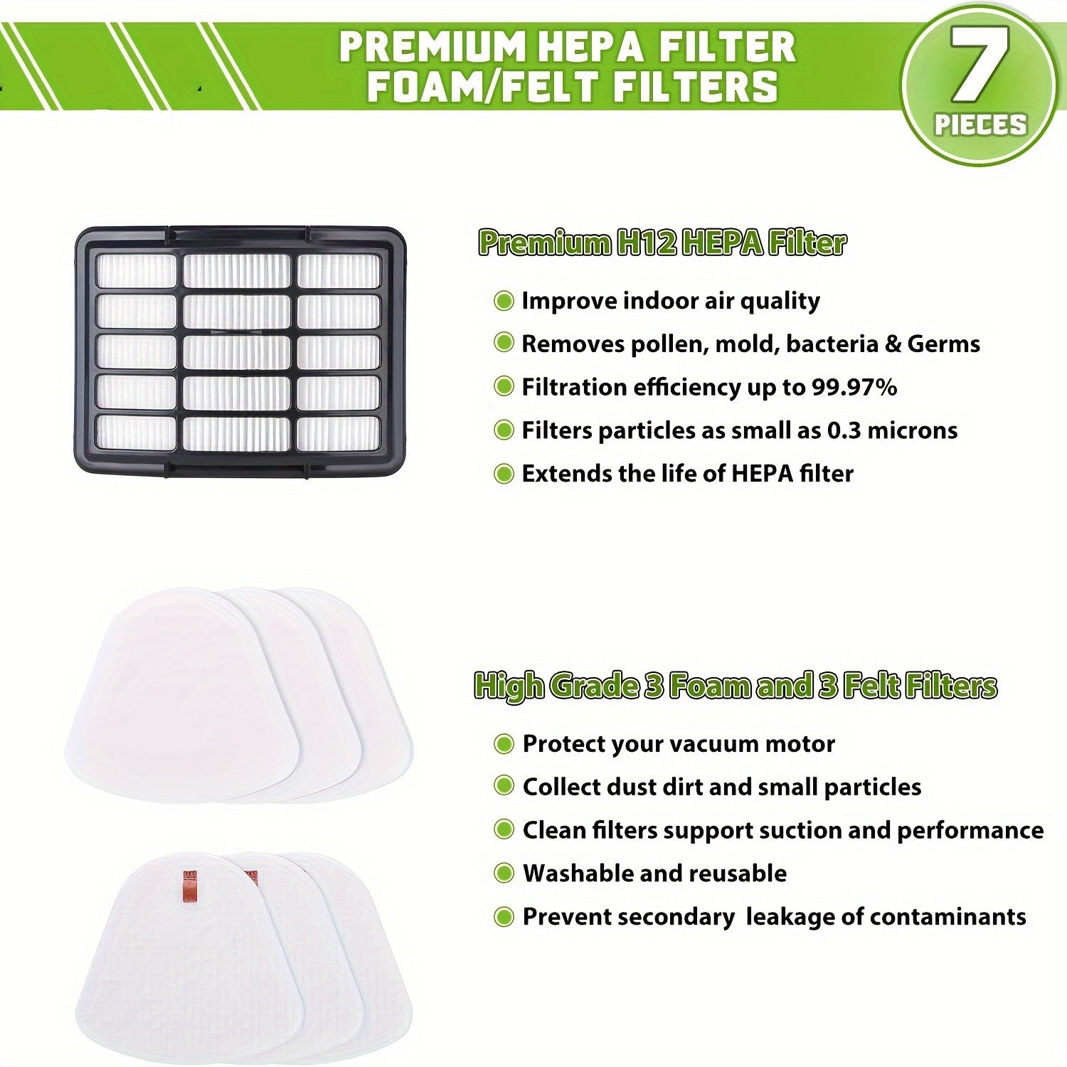 Lift-Away modellari uchun 7 ta paketli vakuum filtri to'plami, ko'pik bo'laklari va HEPA filtrlari bilan