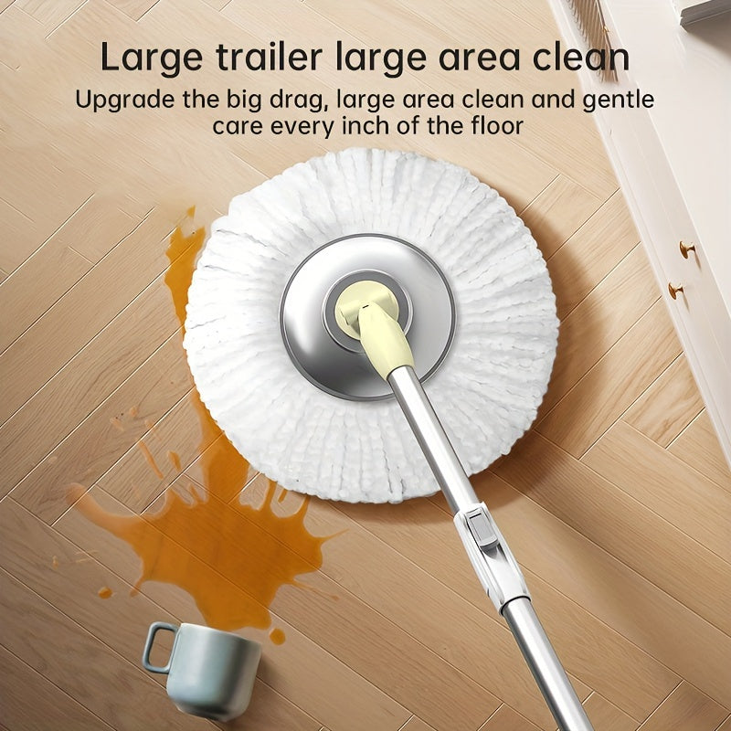 To'liq Spin Mop va Vedro Tizimi 3 Ta O'zgartiriladigan Boshlar Bilan - Uy, Oshxona va Hammom uchun Oson Tozalash, Chang Olish va Moplash - Mustahkam Nikel Qoplamali Tutqich Kiritilgan
