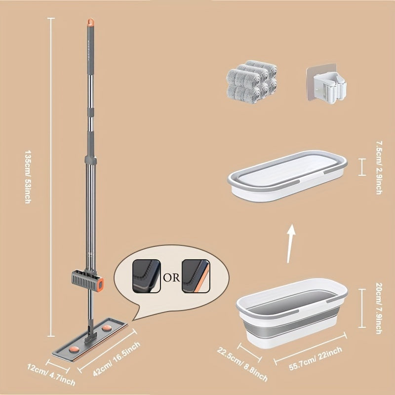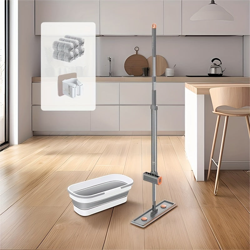 Yassi mop va bukletli kova to'plami, aylanadigan bosh va qayta ishlatiladigan mato bilan